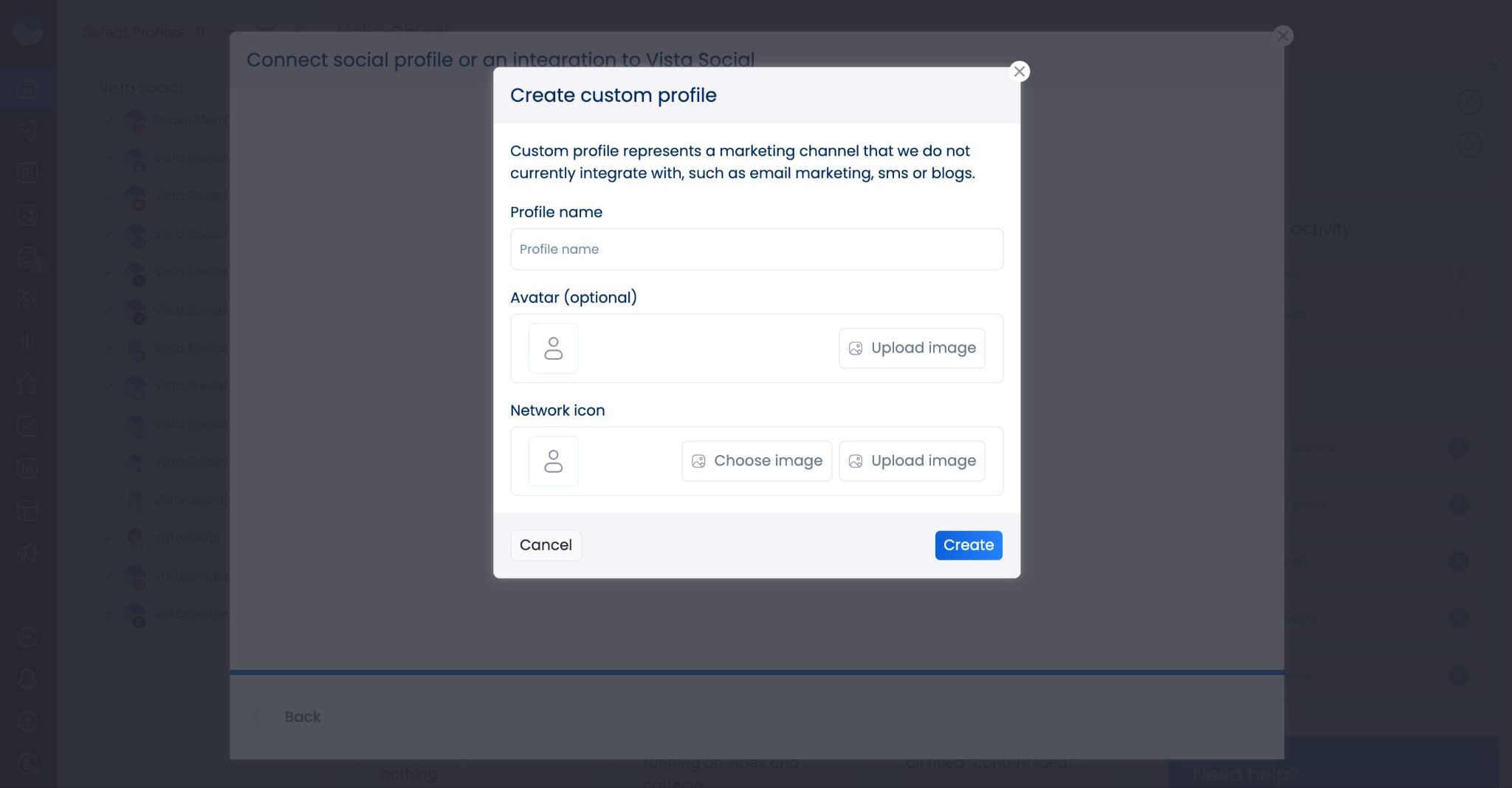 New custom channels feature: Connect more than just social media profiles to Vista Social! Add your blog, email, podcast, and more so you can put all of your content in one easy-to-follow calendar.