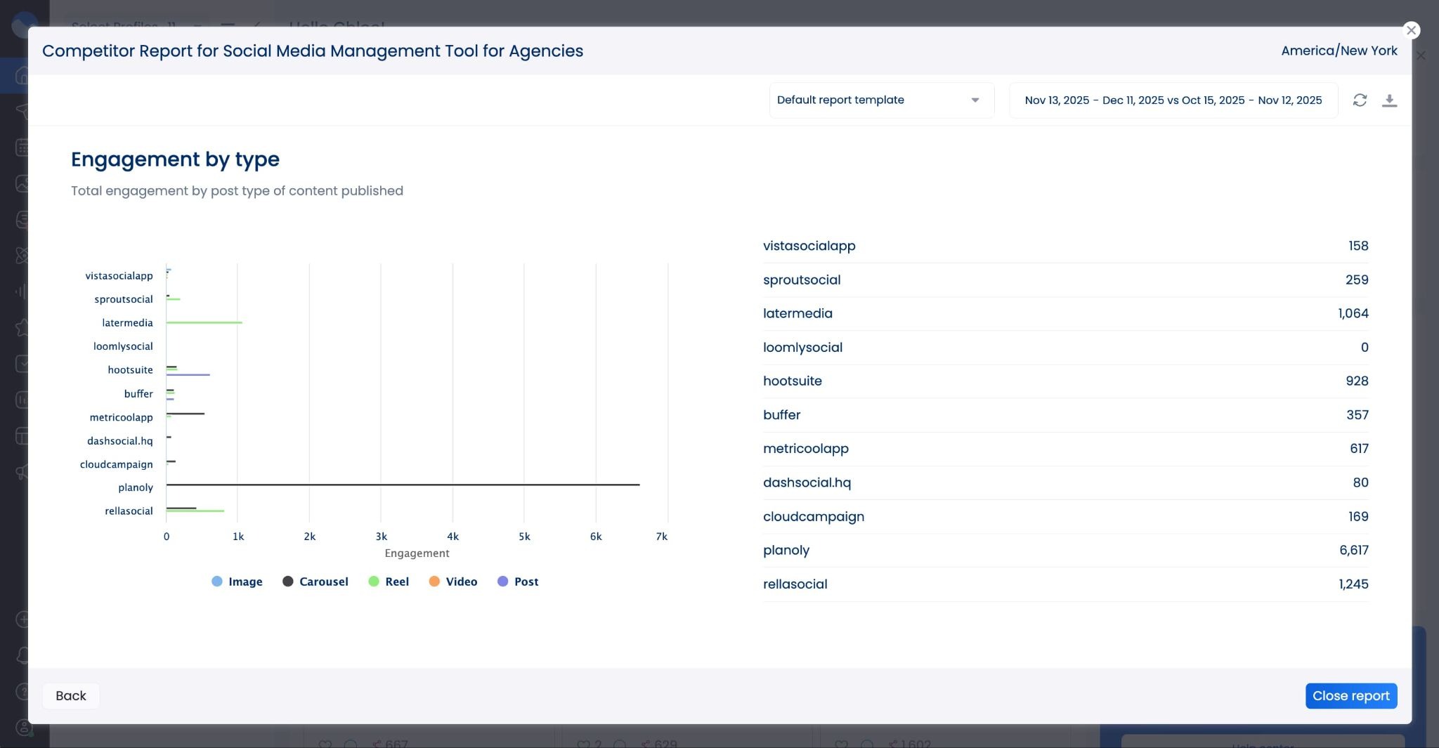 New competitor analysis report widget: We added a brand new widget to the competitor analysis reports, giving you insights into engagement by post type across all of your competitor content.