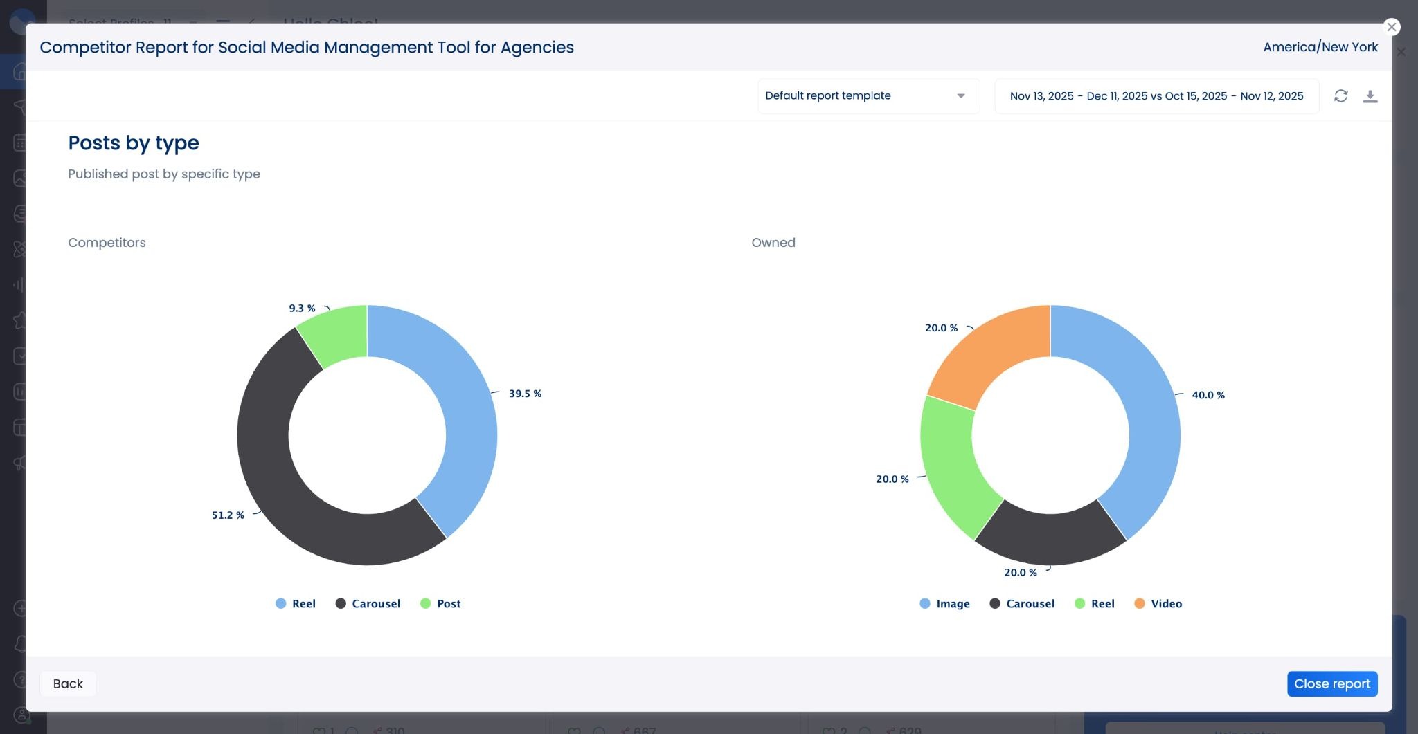 New competitor analysis report widget: We added yet another widget to your competitor analysis reports, this time giving you the option to view posts by type. This gives you insight into the different post formats your competitors are using.