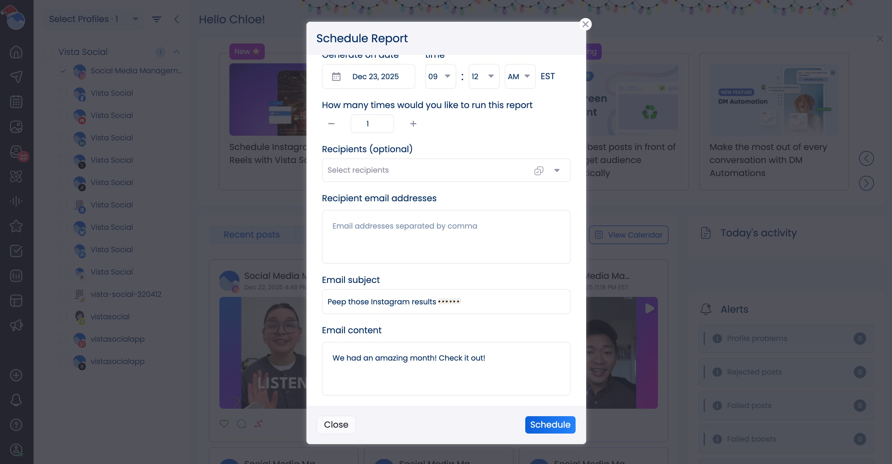 Schedule trial reels: You can now schedule your Instagram Trial Reels right inside Vista Social and make experimentation a core part of your strategy.