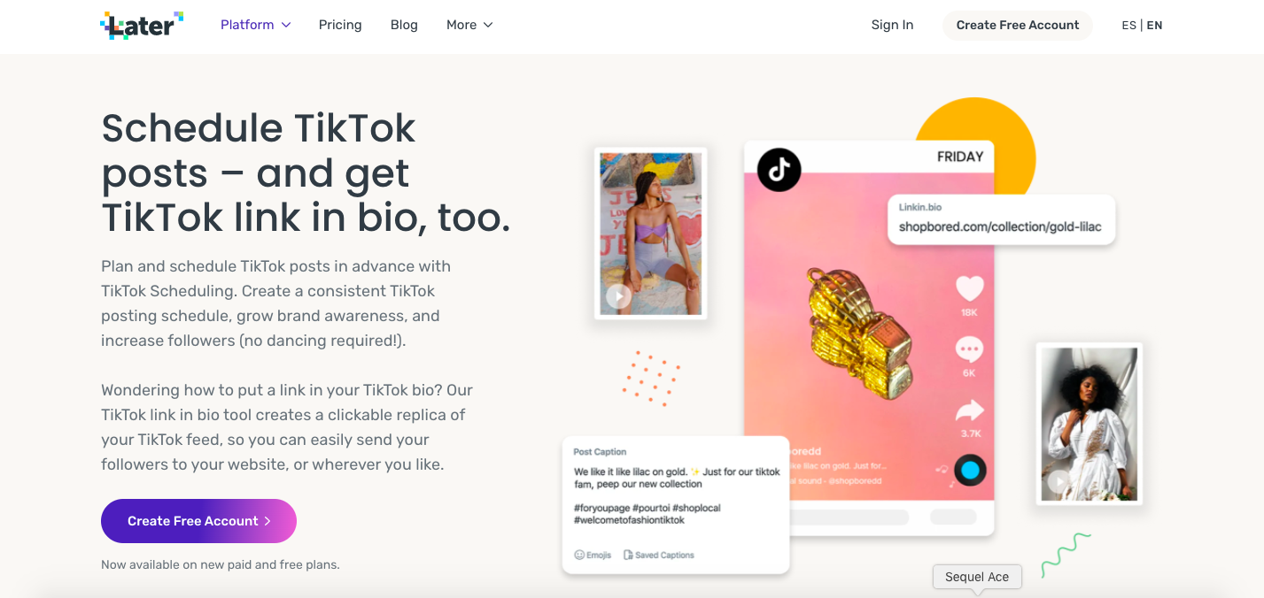 While Later positions itself as the world’s favorite Instagram marketing platform, the service still offers to plan and schedule TikTok posts in advance with TikTok Scheduling. When it is time to post, they will notify your phone app that holds your TikTok-ready video and caption. Then, all you need to do is to open TikTok and post.