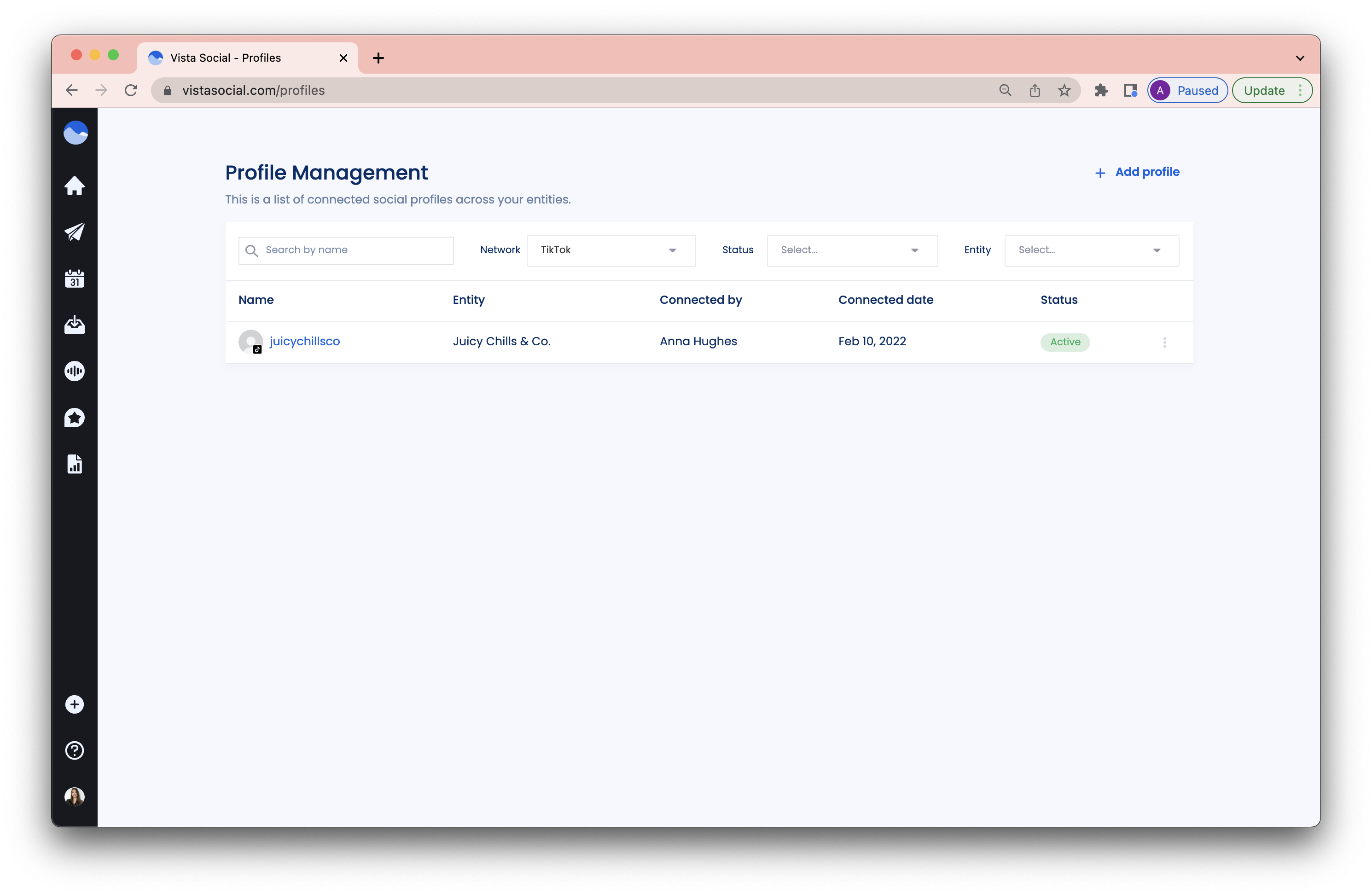 Follow the simple steps below to connect your TikTok profile to Vista Social: