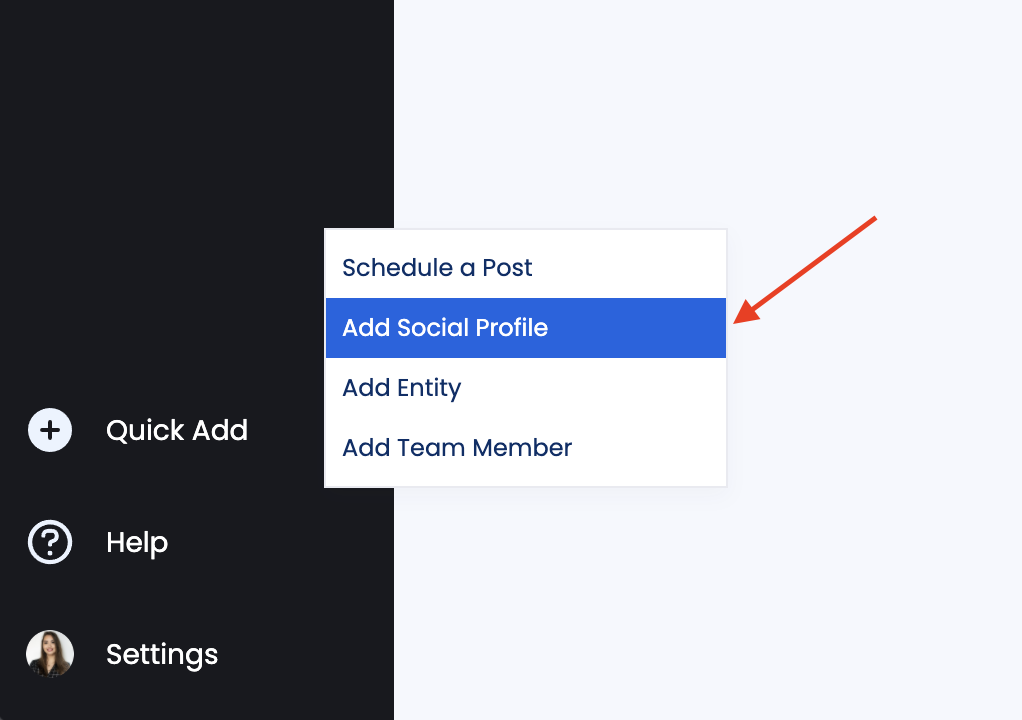 1. Log in to your Vista Social account and go to Profile Settings > Add Social Profile.