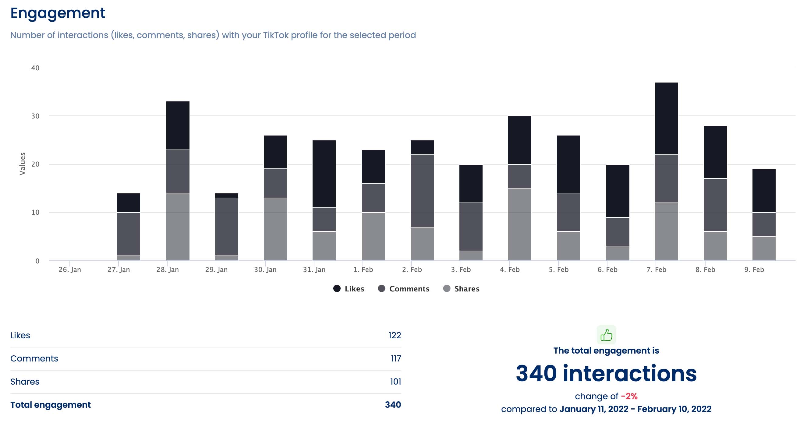 - Visualize TikTok profile data. Understand likes, shares, comments, and views behavior with data visualizations and dynamic charts.