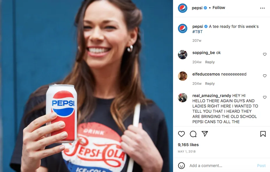 Do not forget about themed days if they match the client’s voice. For example, ThrowbackThursday is a popular social media trend when brands post a photo from a different era. Look at how Pepsi was pushing the idea of nostalgia in branding before they started focusing on keeping fresh.