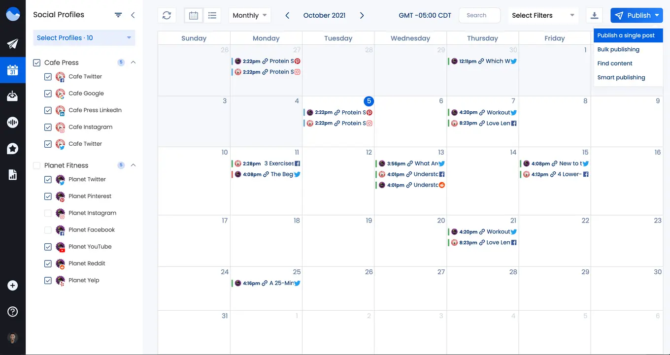 Vista Social is an expertly crafted platform that makes posting and scheduling for social media as easy as 1-2-3. With its content calendar, you will share your publishing schedule with your team members and clients by quickly exporting your scheduled, published, and content pending approval to PDF. Moreover, you can aggregate reviews, use social media listening, monitor analytics, and manage your online content library.