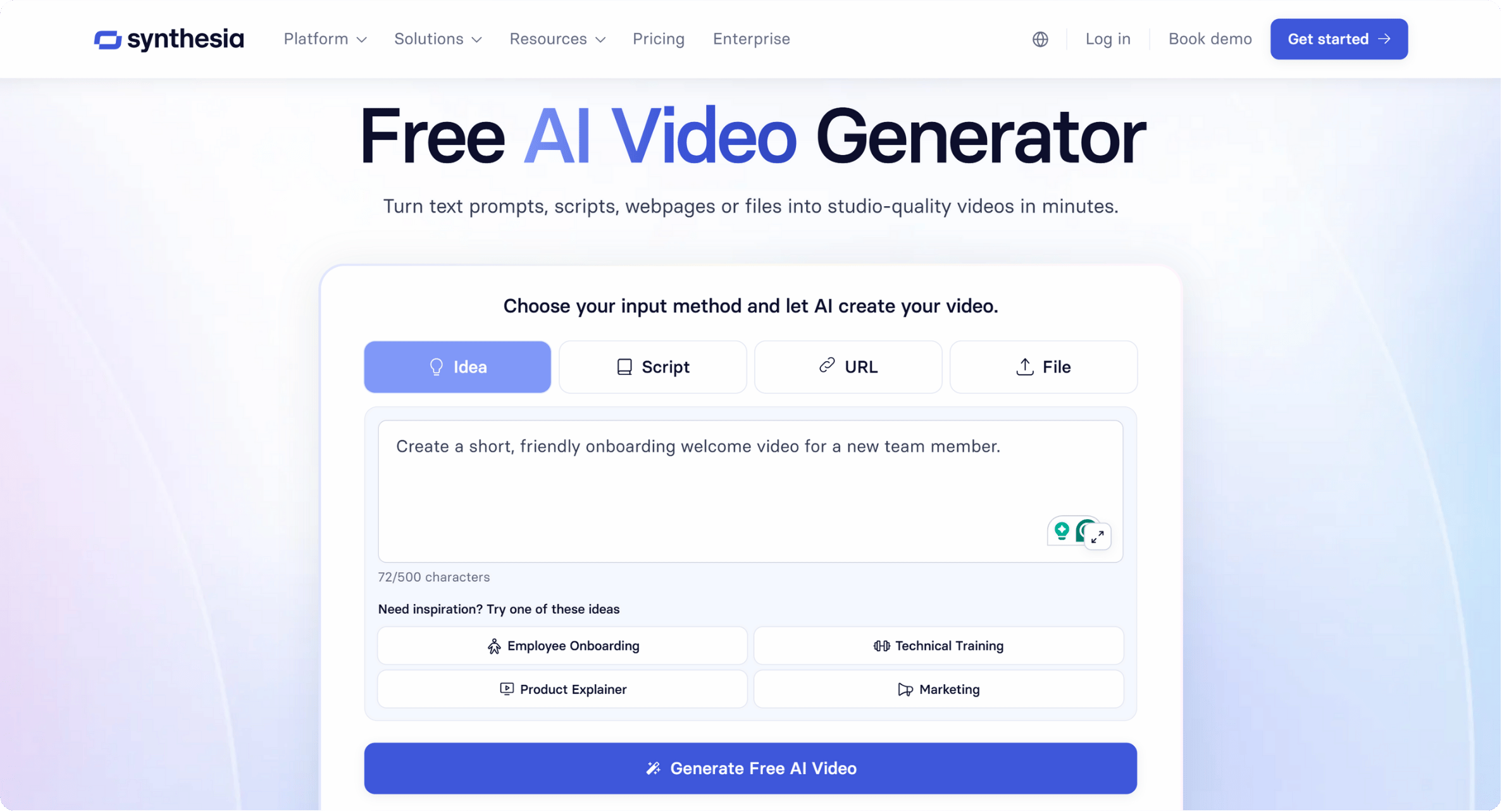 You can create a script from a link, document, or AI-generated idea.