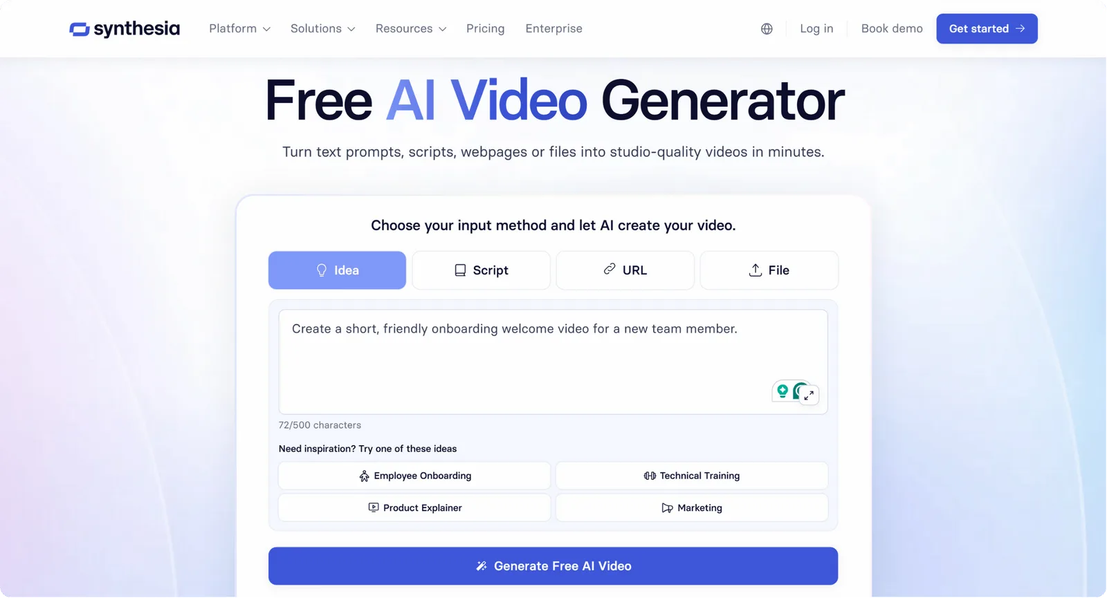 Look for AI video generators that can transform plain text prompts or scripts into complete, ready-to-share videos. This feature uses advanced AI to handle everything from scene creation to voiceovers and transitions, no manual editing required.