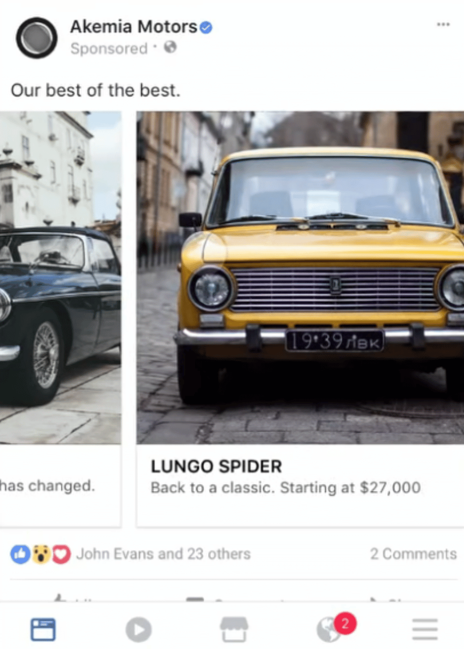 You can share the number of available models or units left to create a sense of urgency among potential buyers. You can also run Facebook automotive inventory ads to promote your clients’ vehicle inventory to their most relevant audiences.