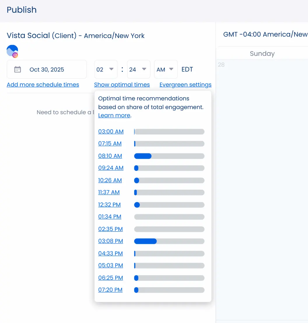 - Suggests posting times based on activity patterns