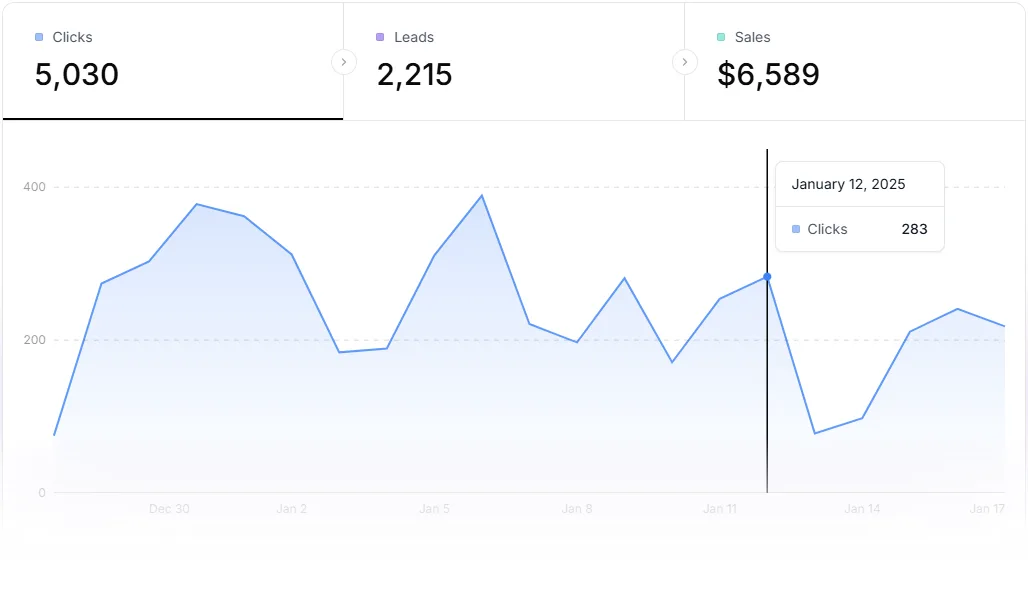 - Advanced Analytics: Track clicks, leads, and sales to understand your link performance and improve marketing strategies.