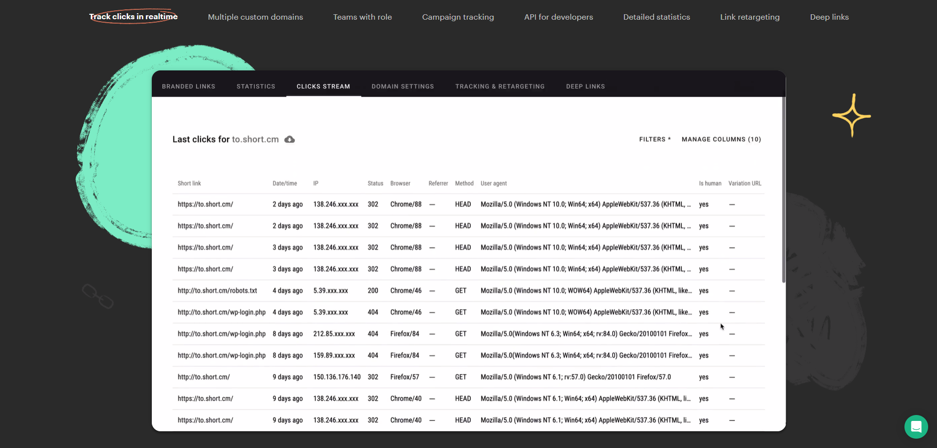 Short.io stands out as a powerful tool for businesses that want to create branded short links while maintaining control over their domain. This feature-packed platform is perfect for small to medium-sized businesses looking to elevate their branding and track their links without breaking the bank.