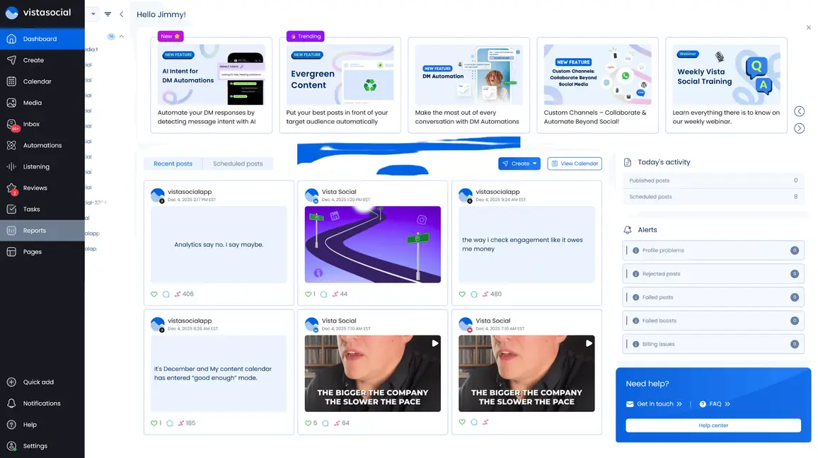 Vista Social gives you the audience insights you need and pulls everything into one clean dashboard so you can move fast when trends shift. It also helps you manage all your conversations in one place and build a publishing schedule tailored to your target audience.