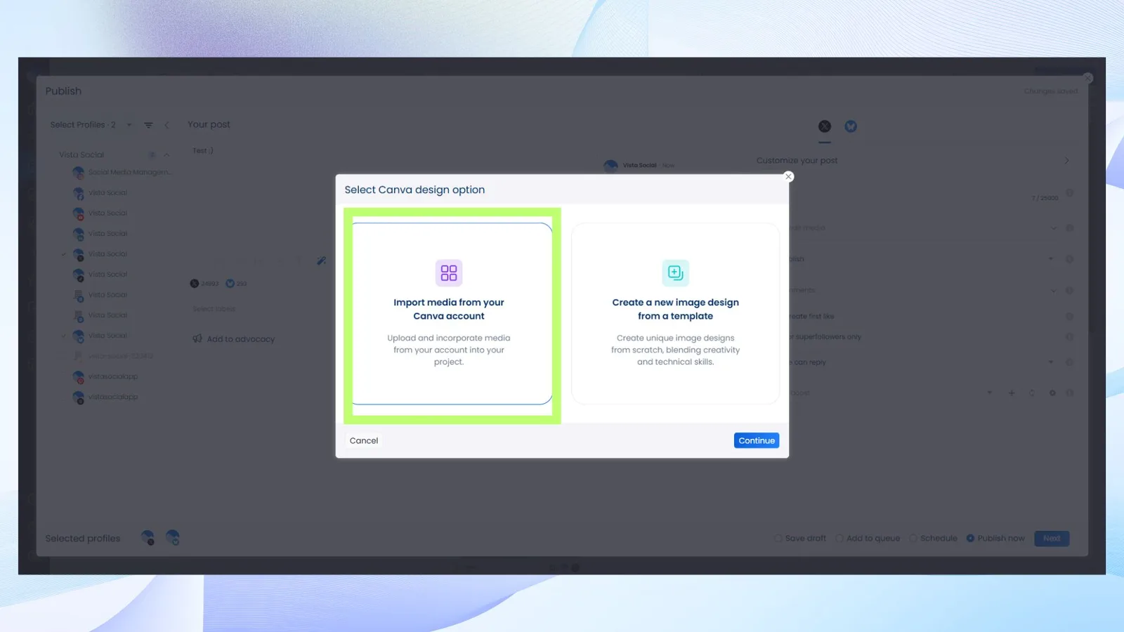 Getting your Canva designs into Vista Social is simple—and takes just a few clicks.