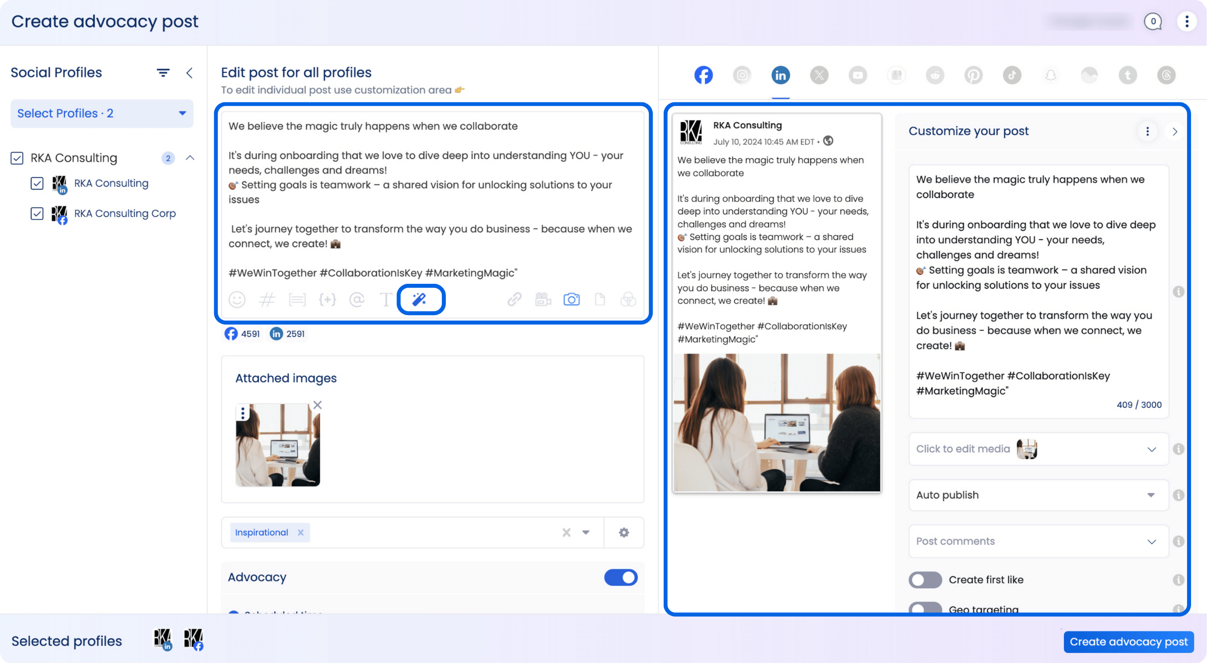 Creating advocacy posts with Vista Social’s social media publishing feature is a breeze.