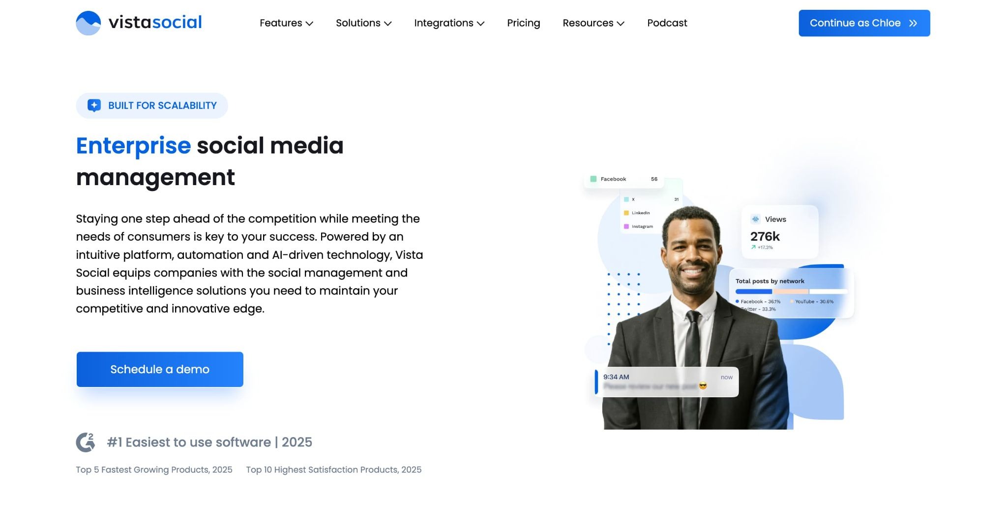 After evaluating all these features and requirements, you need a platform that brings everything together seamlessly. Vista Social was built specifically for enterprise companies facing complex social media challenges. Our platform addresses the unique needs of large teams managing multiple accounts across different markets and regulations.