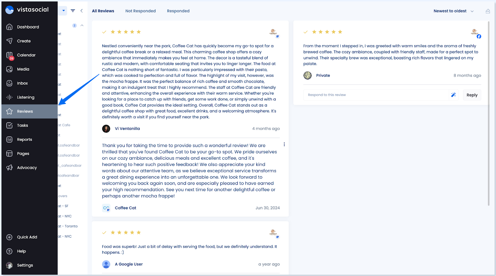 You can also access a Google Business Profile report in Vista Social that helps you keep tabs on your impressions, engagement, and reviews.