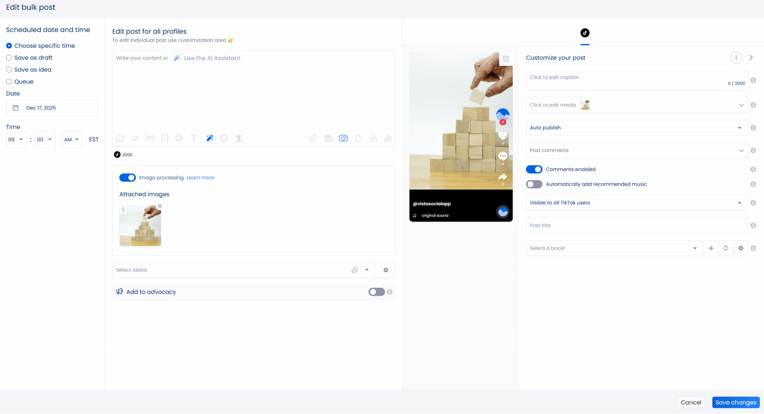 Leverage the best SMM and creator tools, such as Vista Social, to manage your clients’ TikTok accounts and campaigns efficiently.