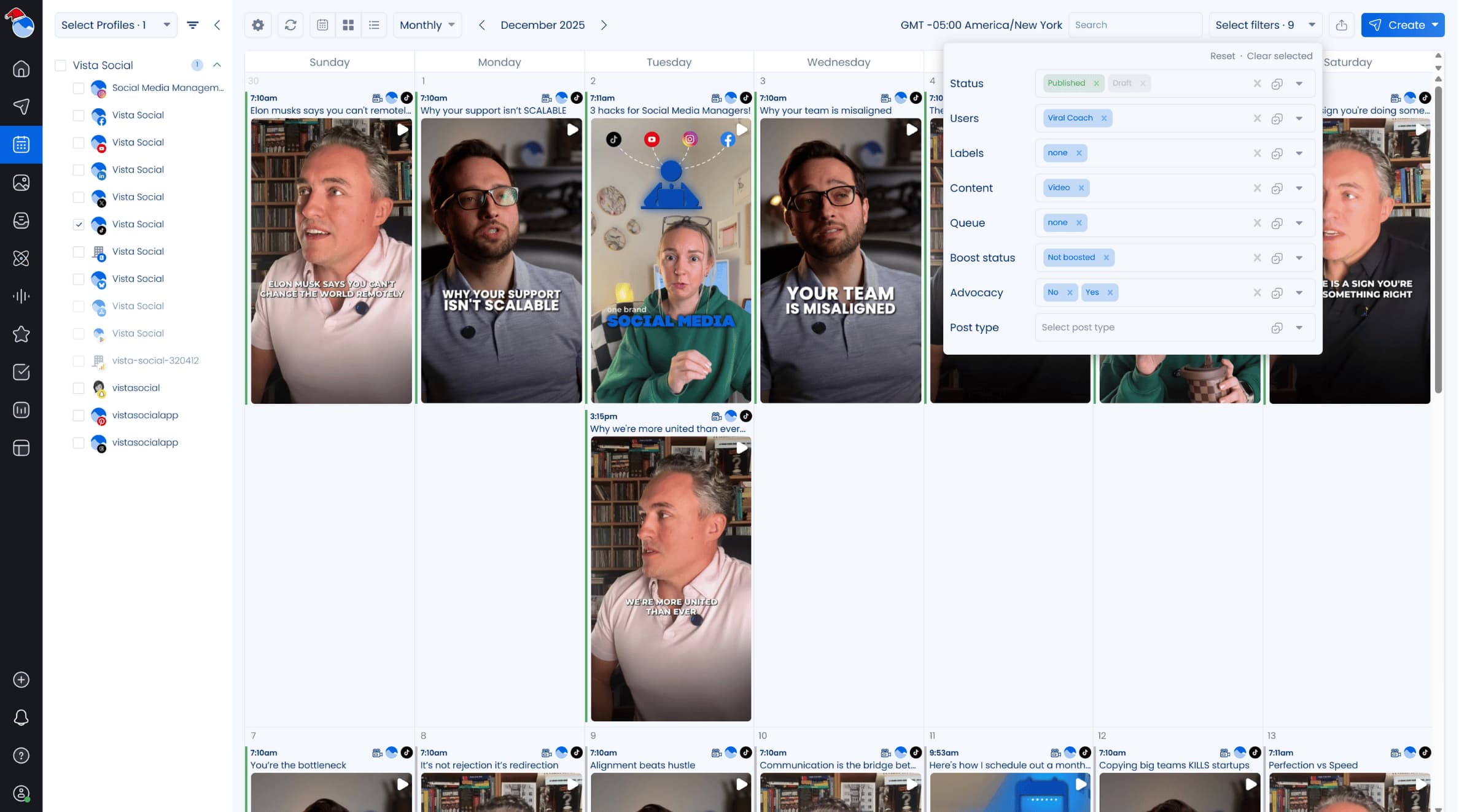 The most reliable way to find the right posting frequency is to test consistently, then let performance data guide your next moves. While this process can take a bit of trial and error, you can streamline your content publishing by creating a TikTok posting schedule. This is where a reliable platform like Vista Social really starts to matter when you are handling multiple client accounts and tightening your social media publishing workflow.