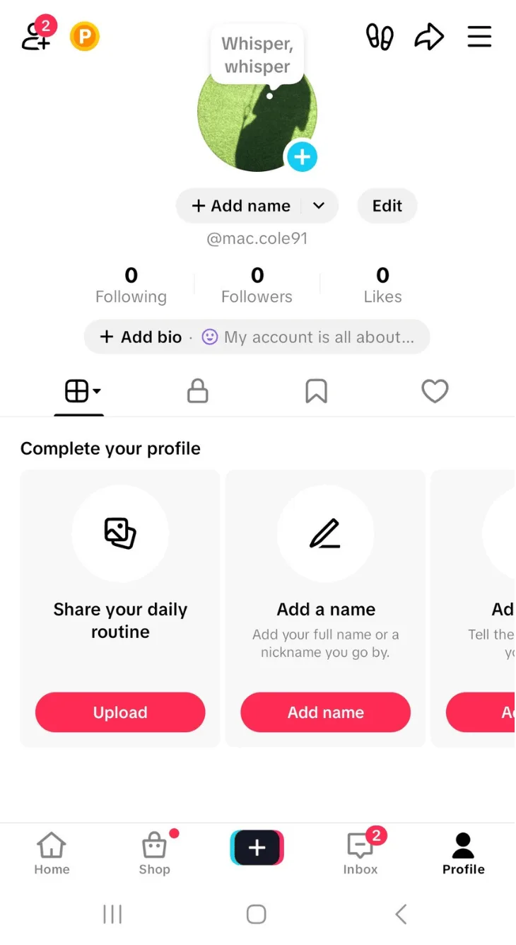 TikTok will tell you if another user has already snagged that username. Make sure the username follows TikTok’s community guidelines, since inappropriate names can limit visibility or cause account issues.
