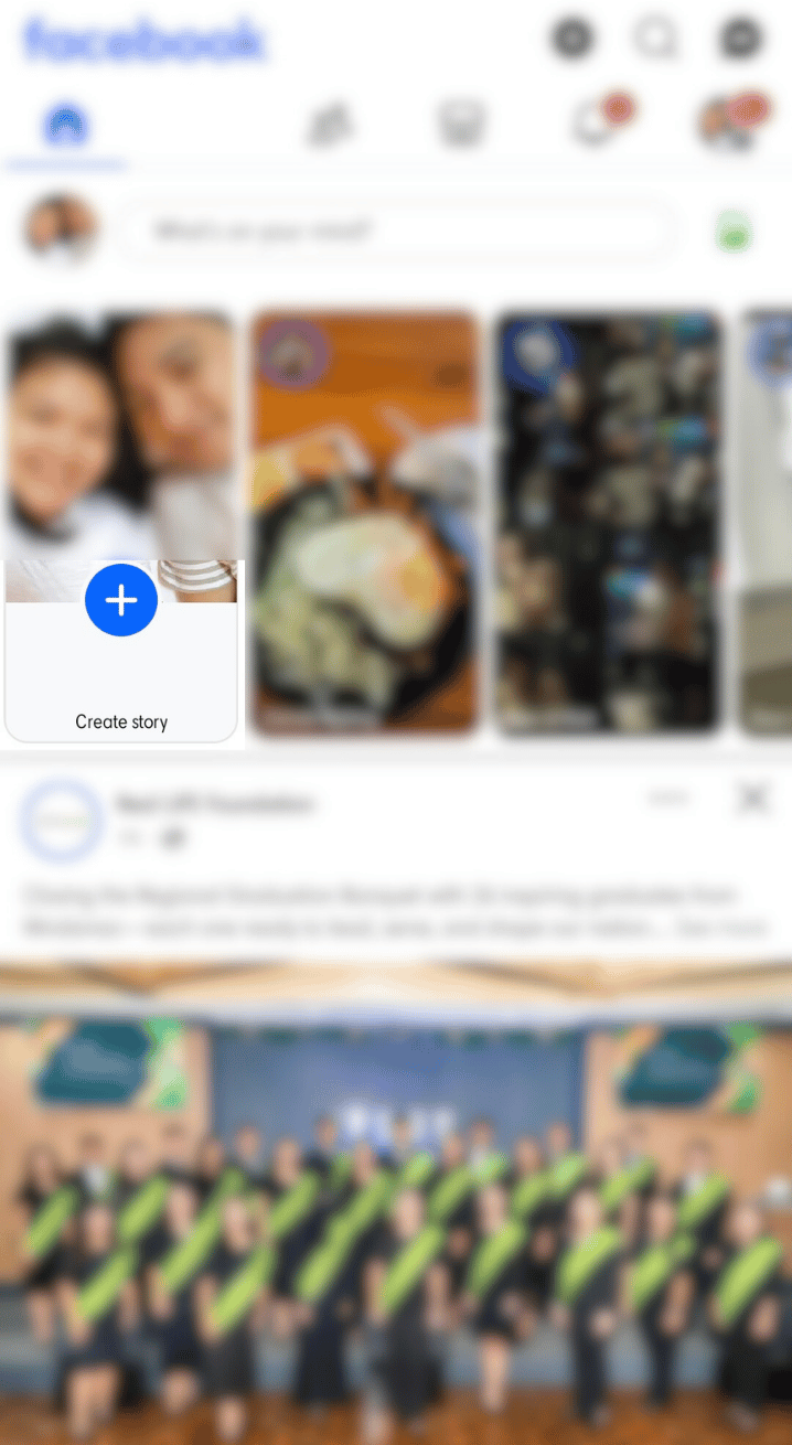 Tap on the blue plus sign at the top of the Facebook page to create a new Story.