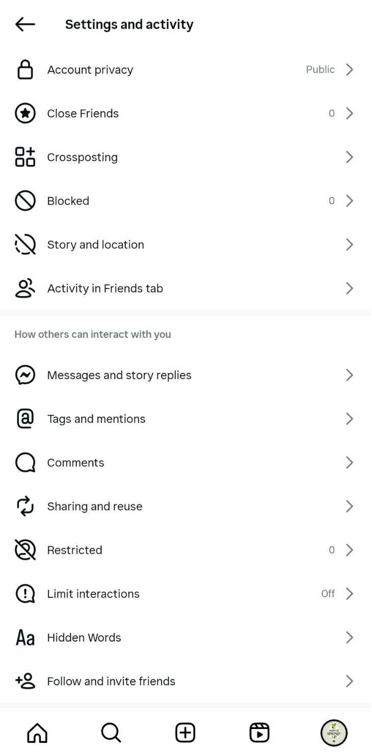 Check your client’s activity status by opening their profile and tapping the menu icon at the top right. From there, go to Settings and privacy, scroll down, then select Messages and story replies.