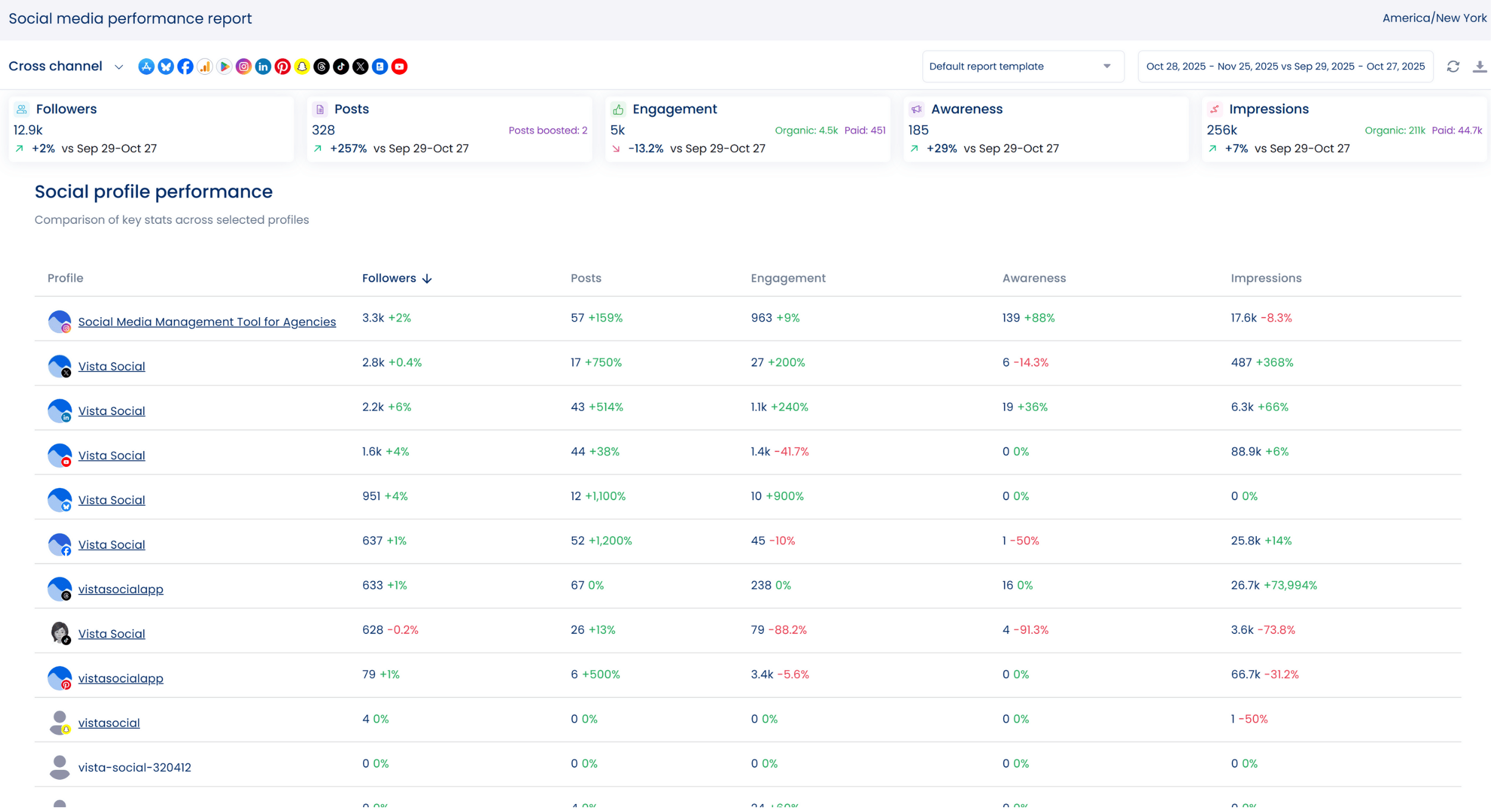 Additionally, Vista Social’s social media analytics feature now includes a grid view for your reports.