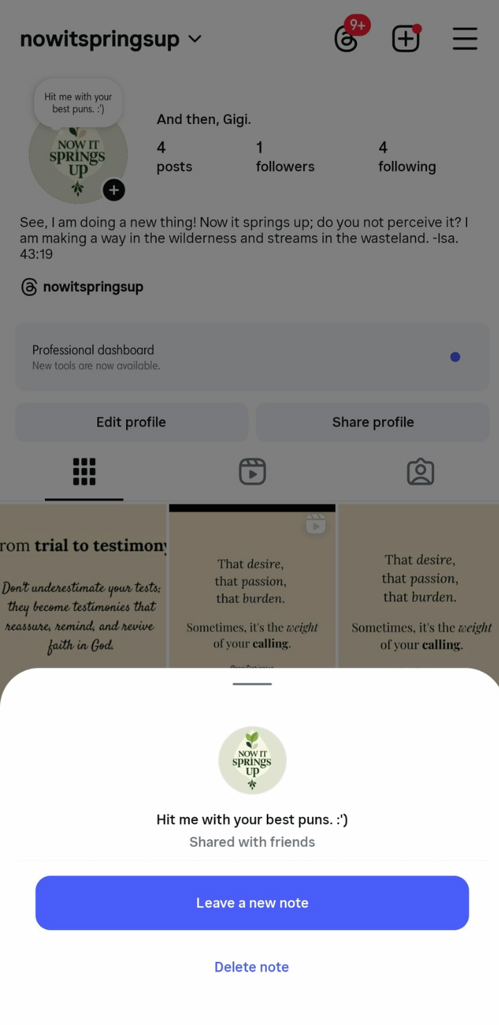 Instagram Notes has grown a lot over the past couple of years, so you’ll see more creative options now. You can enhance Notes with media, and Instagram keeps adding more ways to do this. To create a Note, tap the music icon at the bottom of the profile picture and search for the track your client wants to use.
