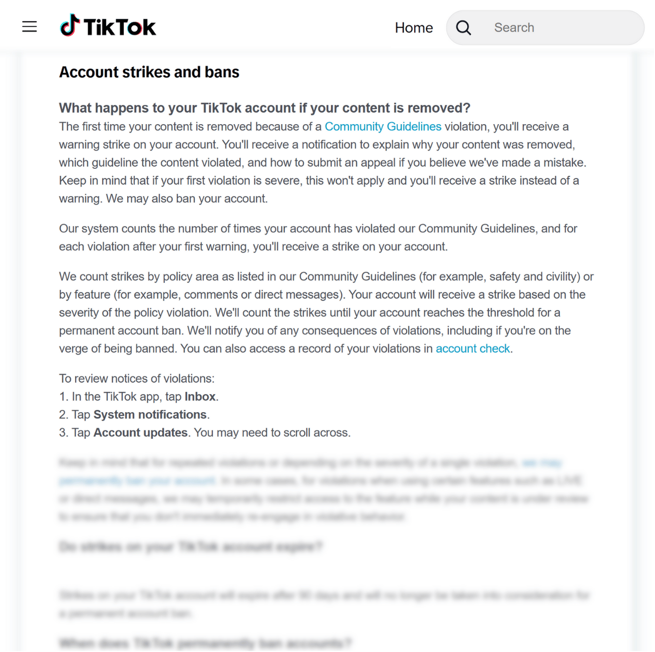 If your client is temporarily banned or shadowbanned for minor violations, remind them to review TikTok’s community guidelines, which can be accessed here. This long document outlines the grounds for TikTok violations and why they’re enforced.