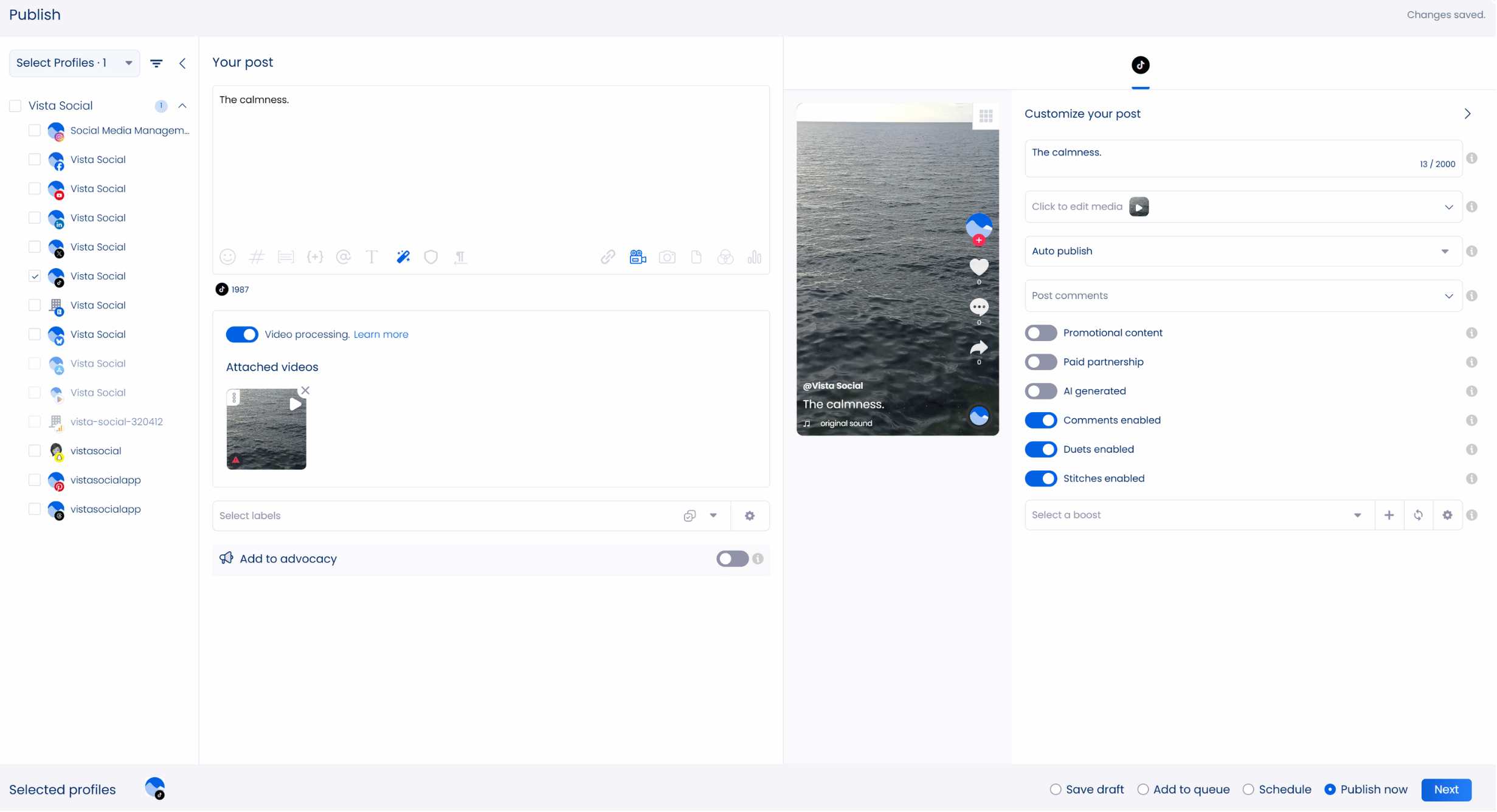 If you post your clients’ TikTok videos through Vista Social and the post gets deleted, you’ll have a copy of the content in the media library. This way, you won’t lose the content if it gets taken down or accidentally deleted.