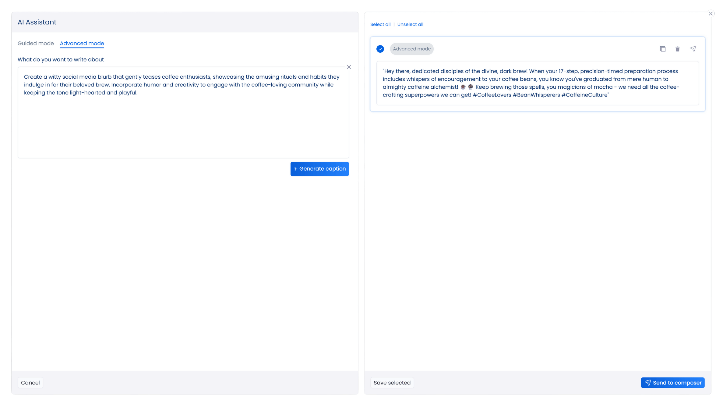 The captions it creates often have a fresh and authentic tone that matches your brand’s personality. If you want new options, click again to generate fresh variations until you find the perfect one.