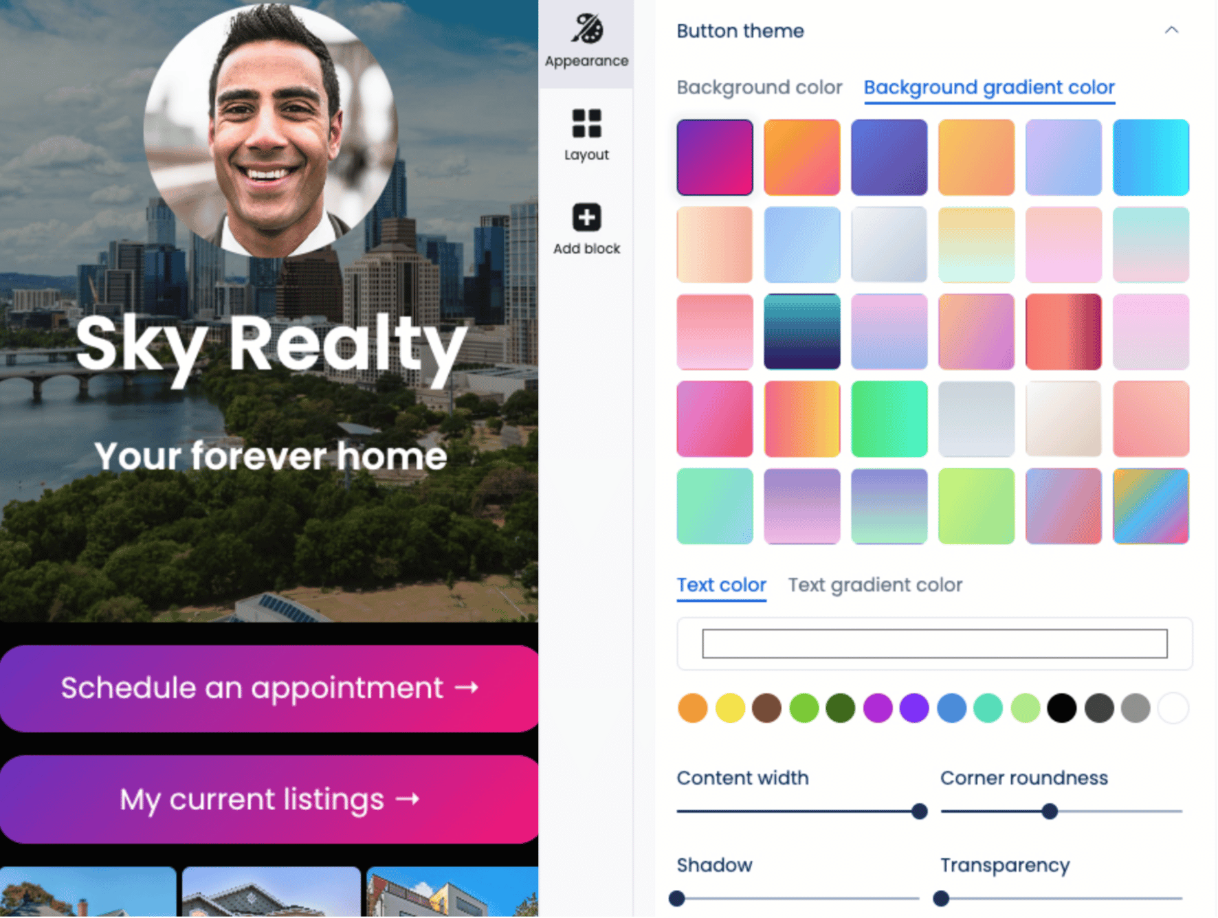 Add sections that highlight what matters most for your clients, such as featured products, event sign-ups, or booking details.