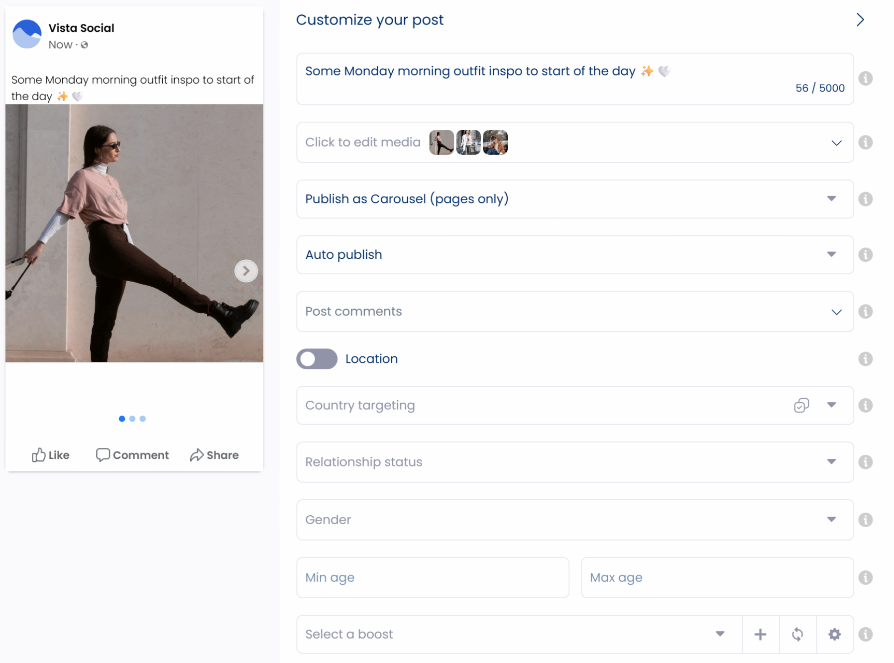 You can also schedule posts to appear automatically on Vista Pages, keeping them fresh without constant updates.