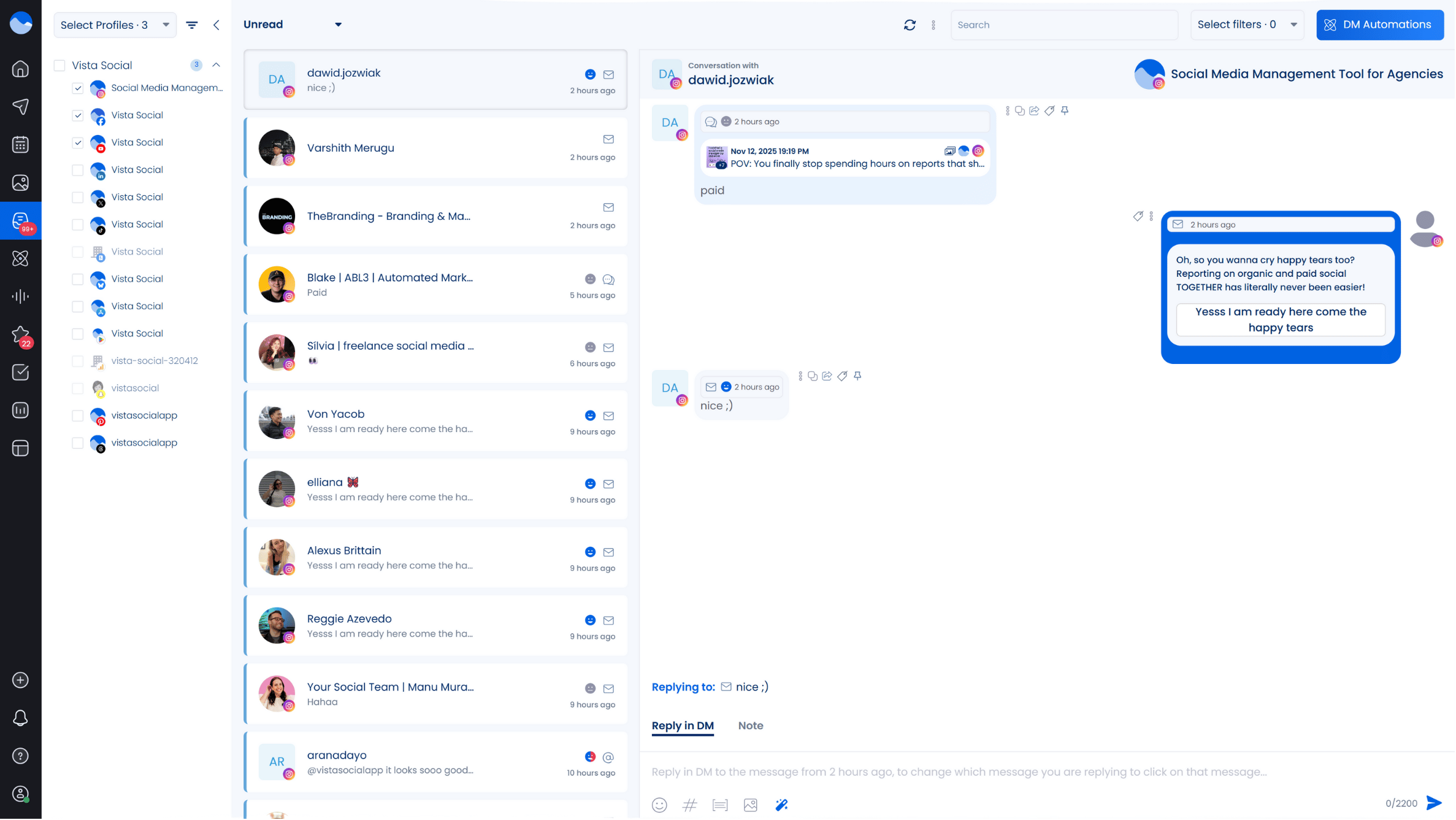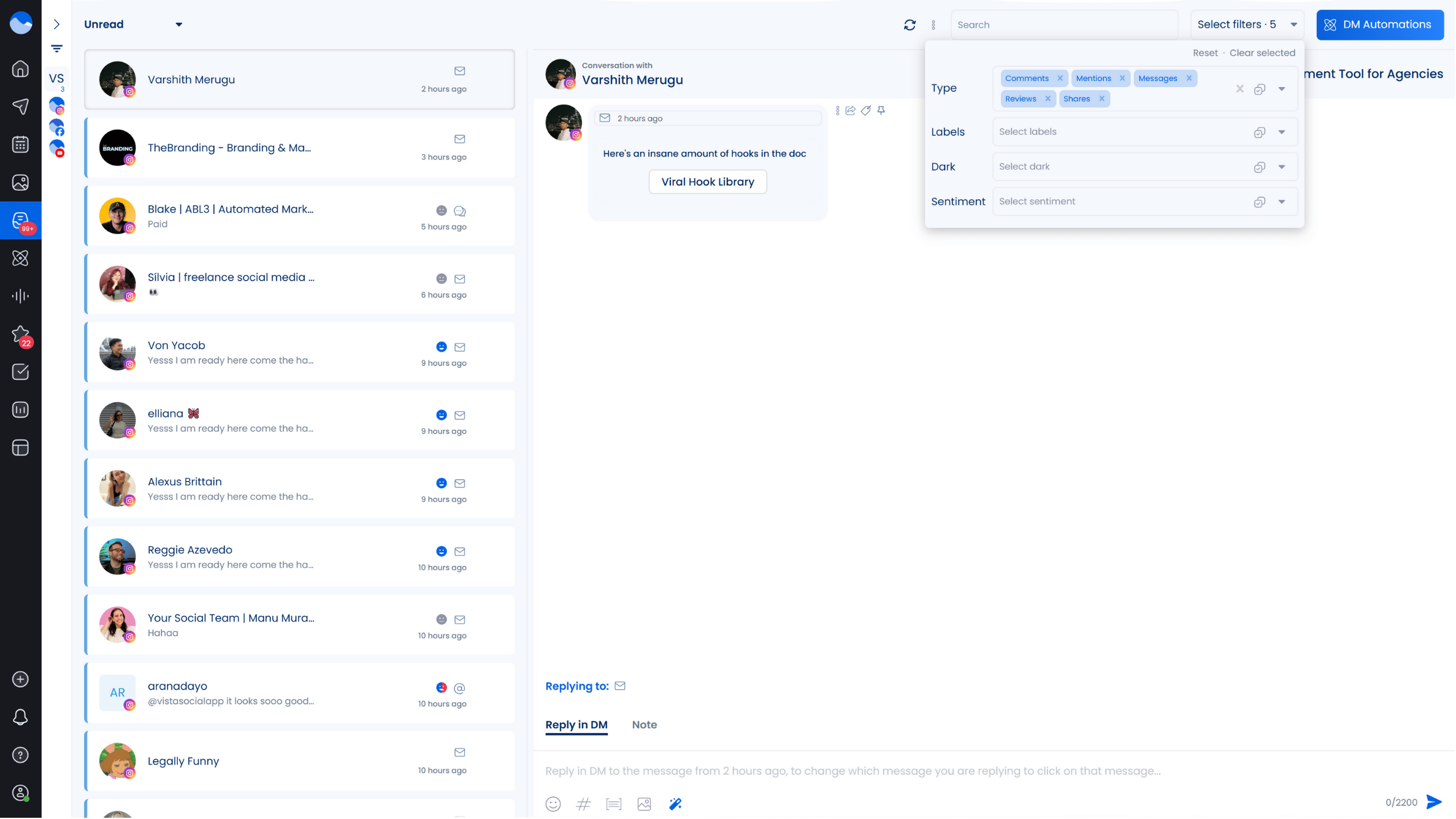 You can manage every interaction directly inside the inbox, like delete, or archive messages, flag spam, or even block users when needed. Managing audience engagement becomes simple when everything happens in one place with Vista Social.