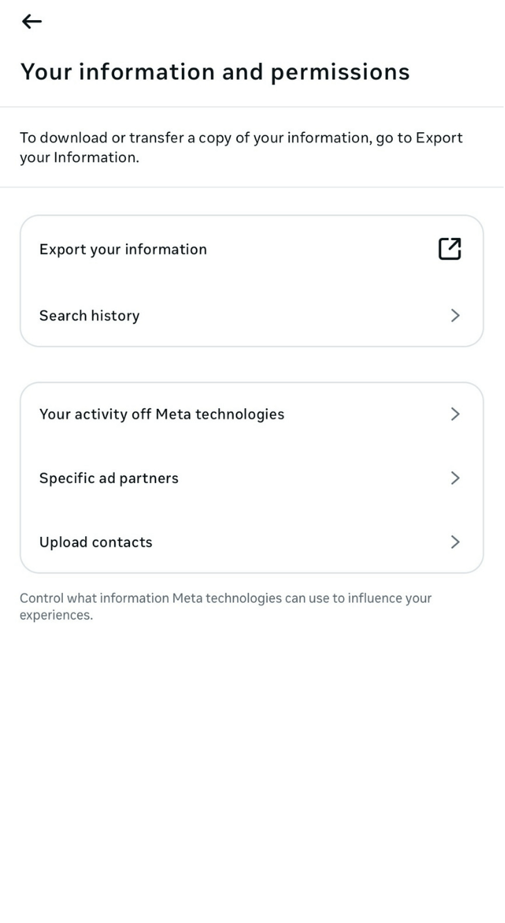 Tap ‘Your Information and permissions”.