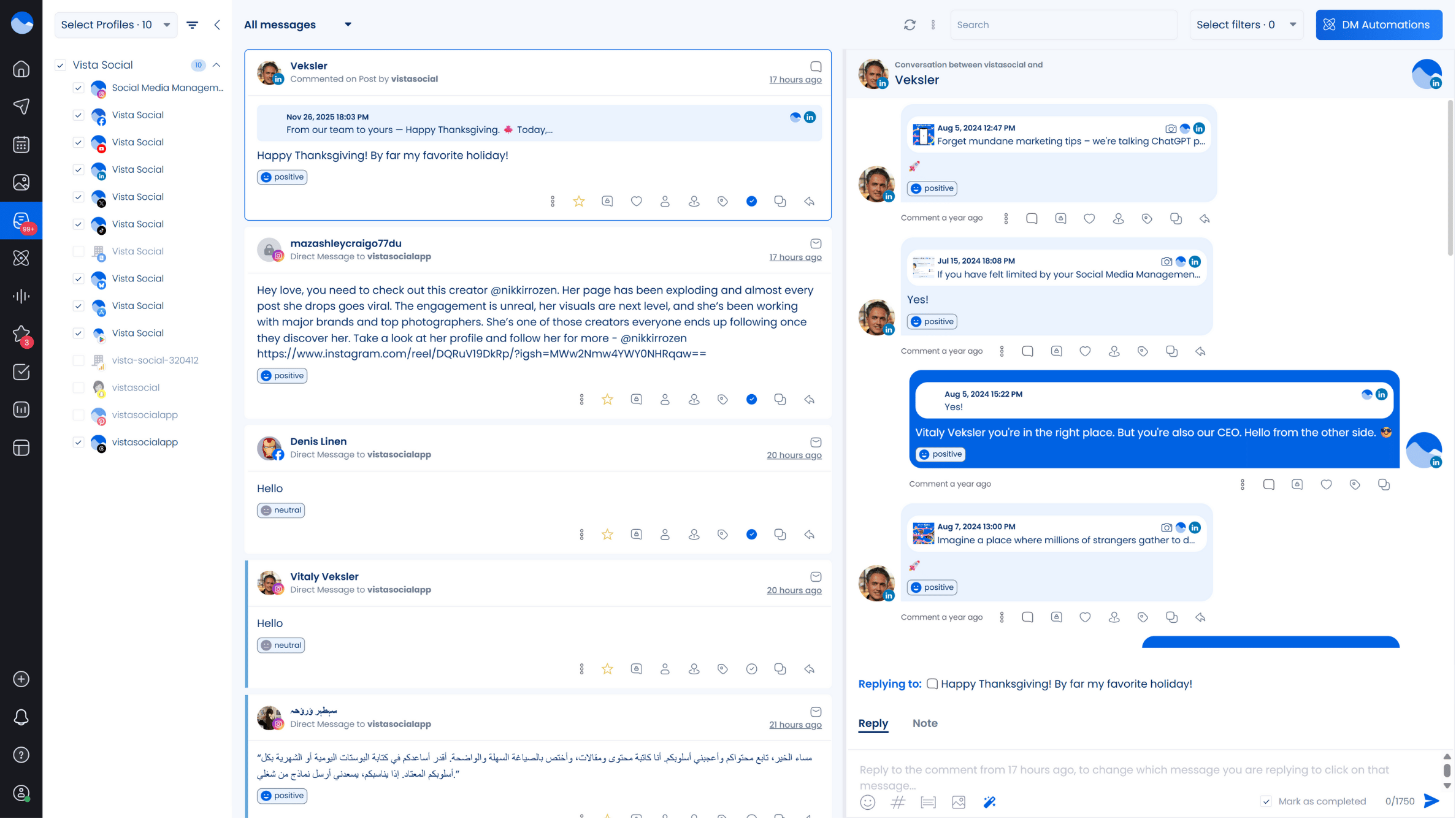 Managing your clients’ Instagram conversations and daily interactions can get overwhelming, but Vista Social keeps everything in one simple workflow.