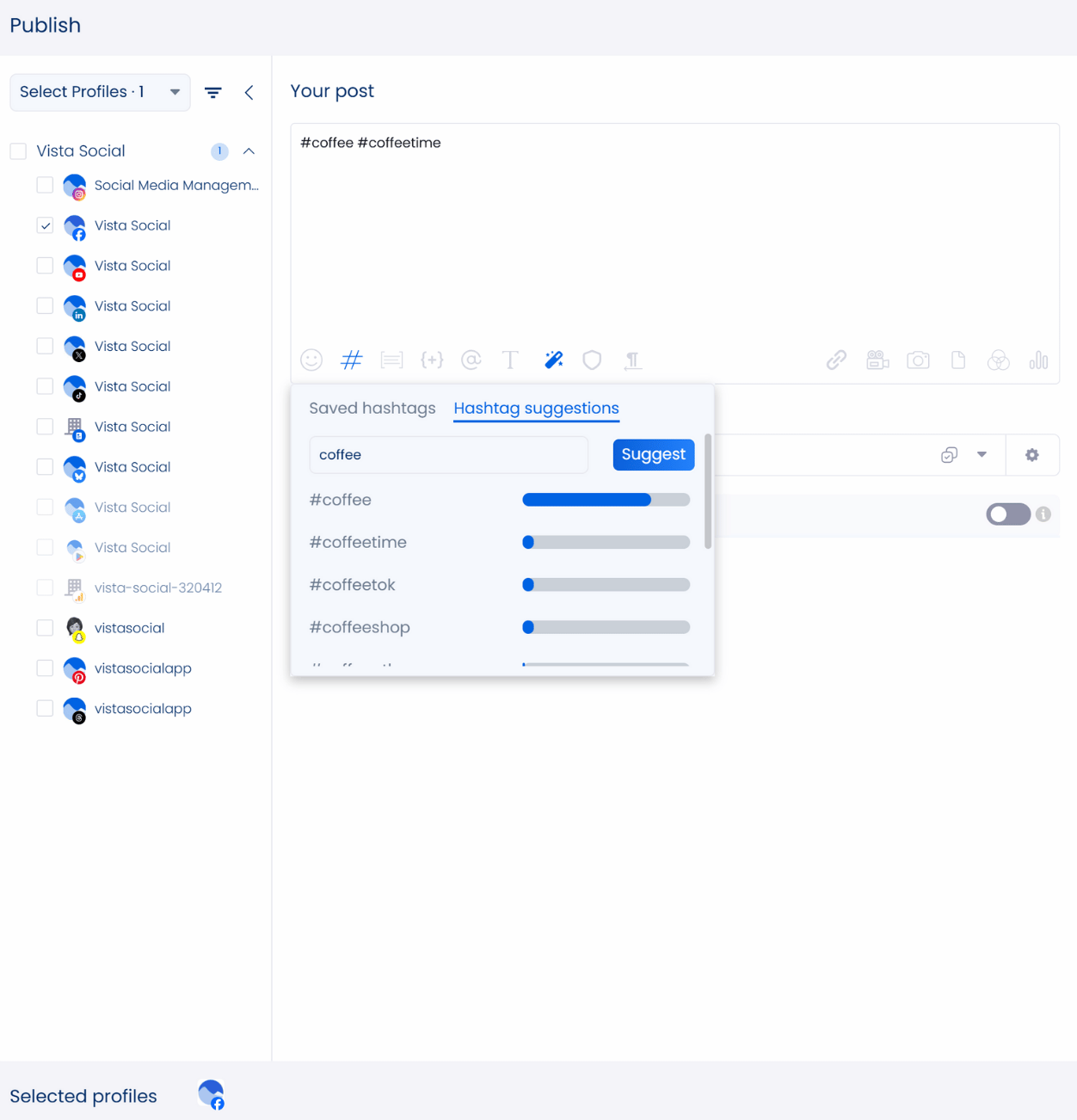 2. Vista Social also gives you AI tools, including an AI Assistant that helps you write posts faster by creating captions and descriptions for you. If you ever need a clearer view of how Instagram sorts Story views, this guide to Instagram Story Viewer Order can help you understand the pattern while you plan content. It also comes with an AI-powered username generator that helps you come up with new, on-brand Instagram handles. Vista Social also has a free hashtag tool as well, and it uses AI to suggest hashtags your clients can use right away.