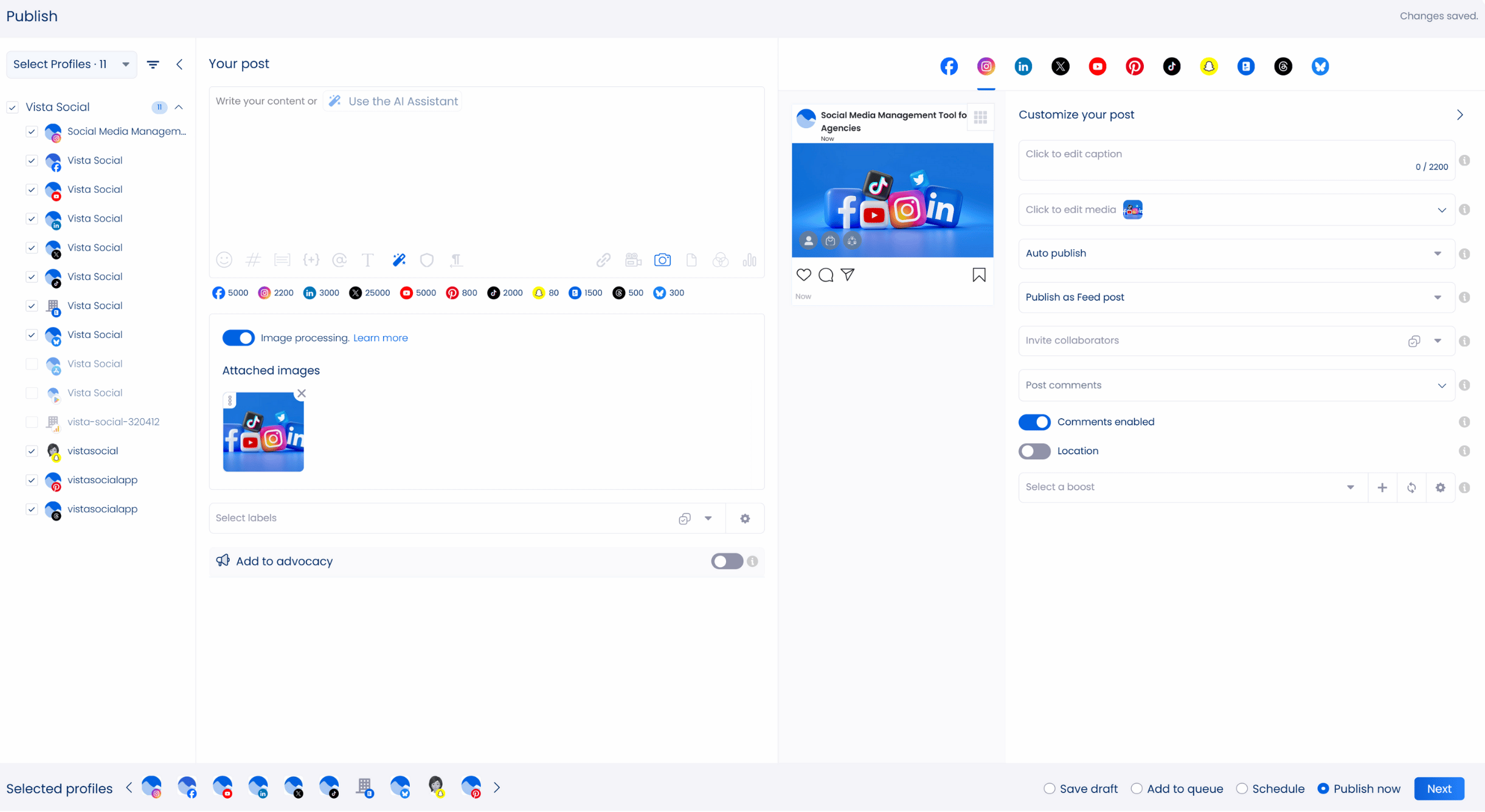 4. An easy-to-use social media publisher that helps you upload your clients’ content and personalize each post before setting it to publish by itself. If you’re working with vertical videos, understanding Instagram Reels dimensions gives you a clearer way to format everything before you schedule it.