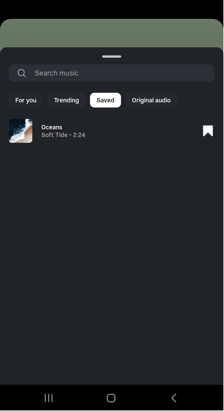 Find the audio in the Reel editor, swipe left then tap the bookmark icon to save it. Your saved audio now appears under the Saved filter inside the Audio panel, so you can pull it up quickly for future Stories or Reels. If the option does not appear right away, refresh the editor or reopen Instagram. Instagram adjusts the placement of the Saved tab during interface updates, so its location may shift.