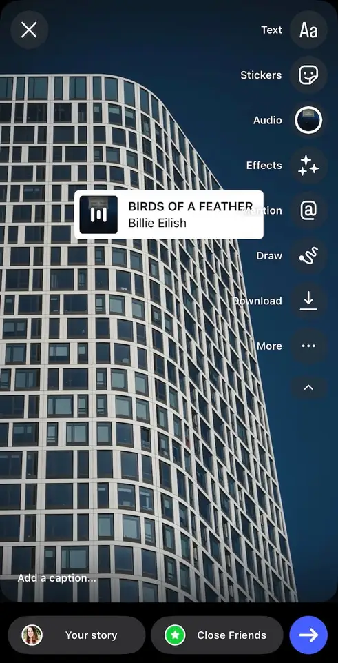 - Make behind-the-scenes Stories more exciting and vibrant with a piece of cool or trendy background music.
