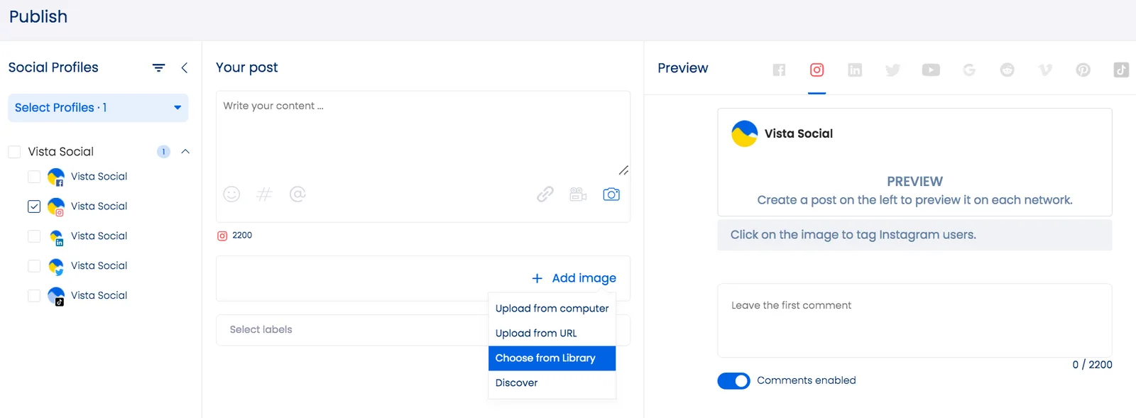 As a tip, Vista Social’s Visual Instagram Feed Planner lets you plan and preview your Instagram feed before you hit publish.