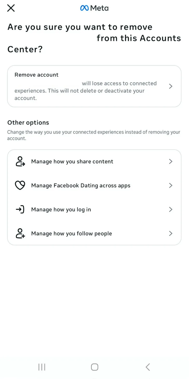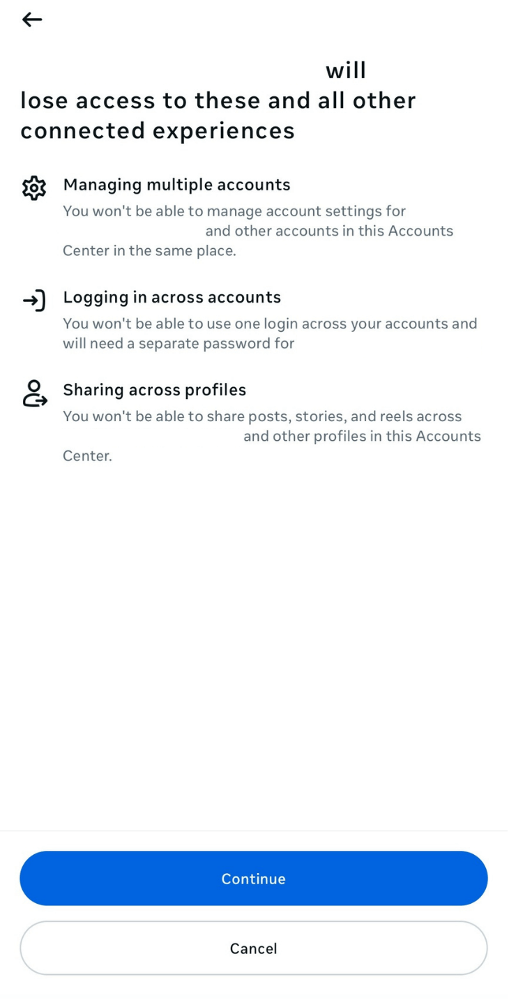 - Confirm that you want to remove the account from your client’s Instagram Accounts Center by tapping Remove account > Continue.