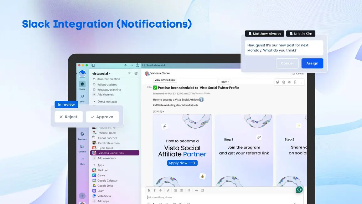 - Slack Integration: Stay updated with real-time approvals, ideas, and task notifications. This integration ensures no task falls through the cracks in fast-paced environments.