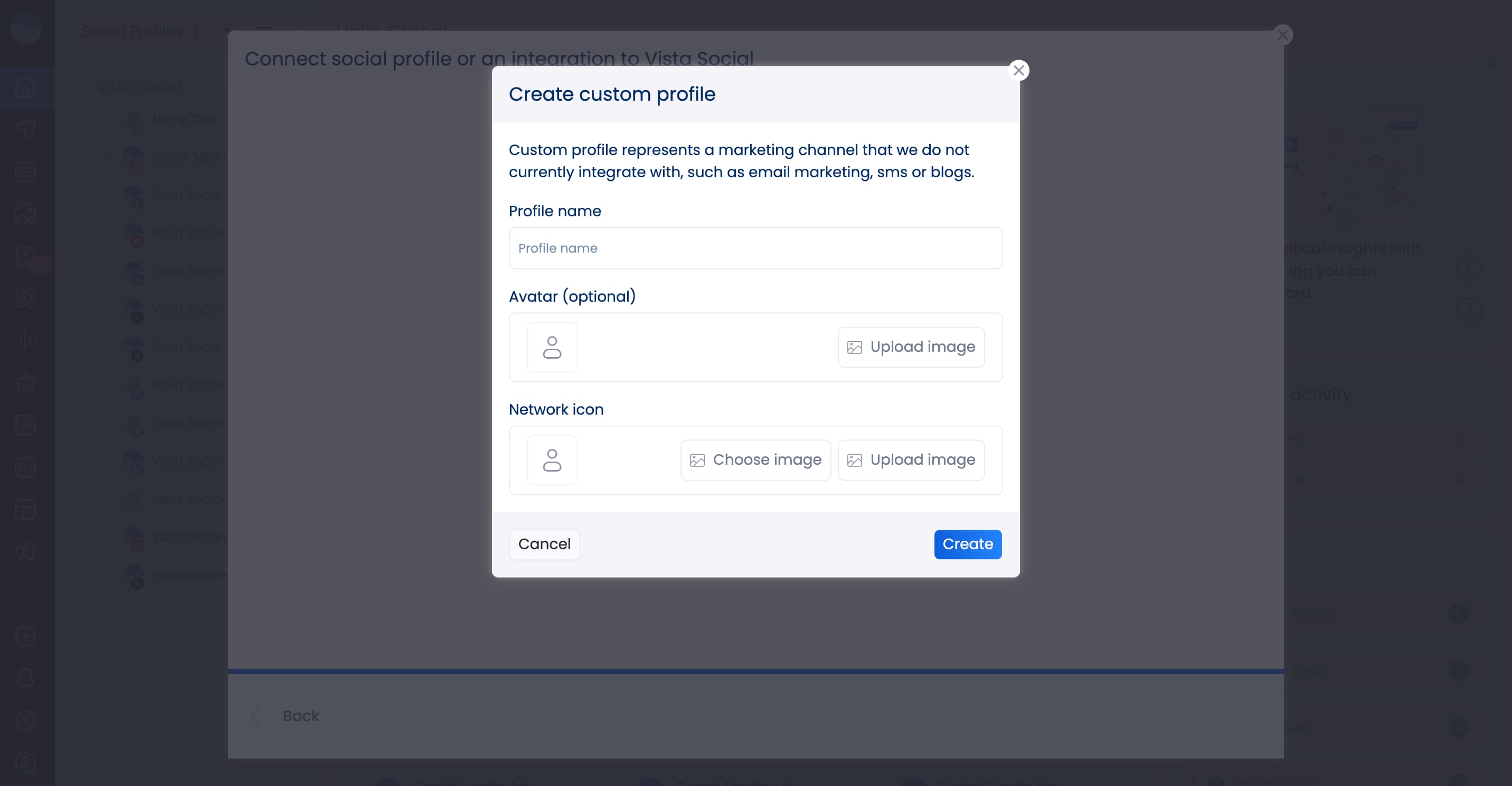 First, you’ll need to set up your Instagram broadcast channel as a “custom channel” in your Vista dashboard.