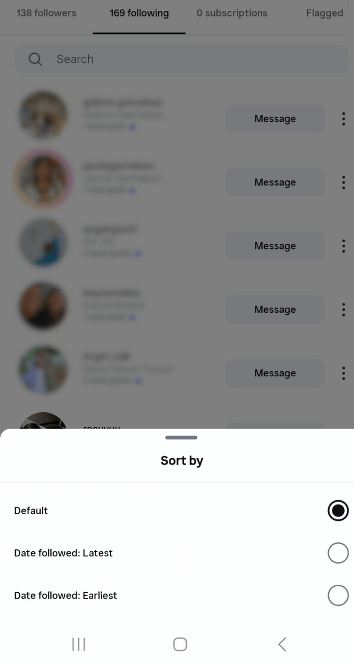 By default, Instagram sorts the following list by interactions. You can also manually sort accounts chronologically using the app’s built-in option.