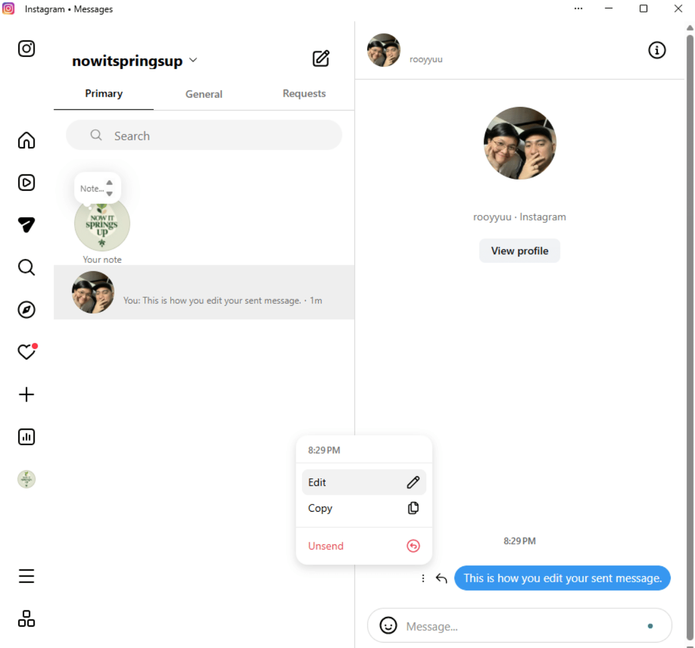 You can edit a message for up to 15 minutes after sending, which is helpful when you want to fix a typo or clarify something you sent too quickly.