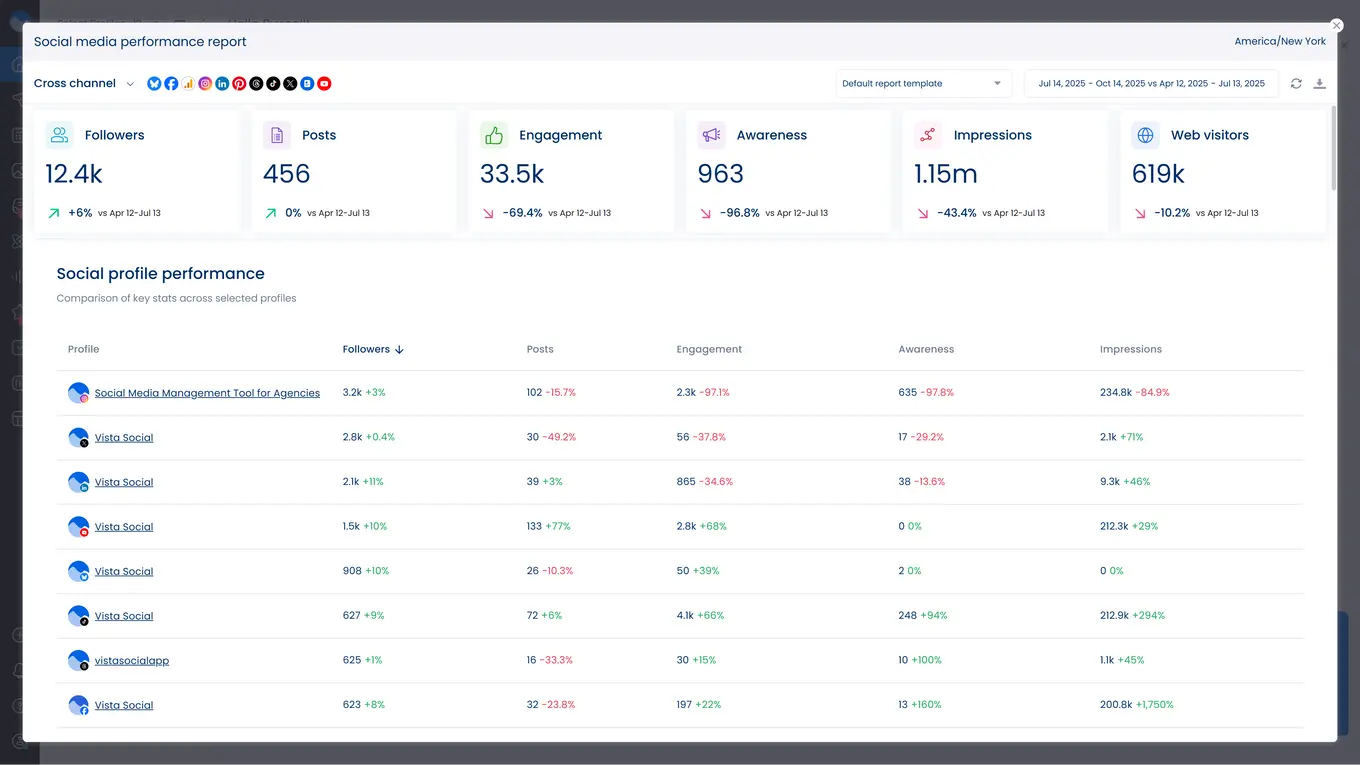 Vista Social’s analytics dashboard shows you comprehensive LinkedIn performance data alongside your other social platforms. This bird’s-eye view helps you allocate resources to your most effective channels.