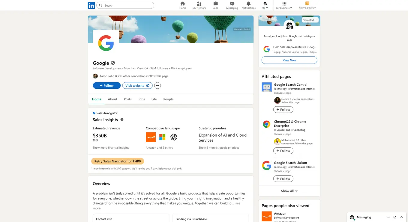Take a look at Google’s LinkedIn page to get an idea of how a completed company page should look.