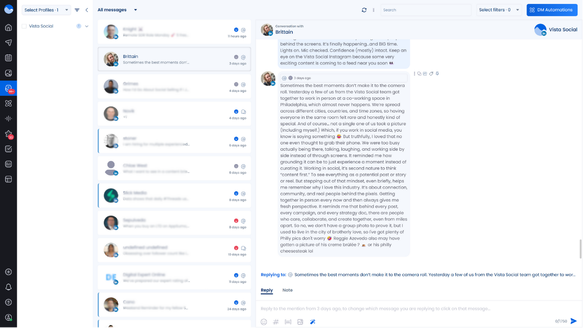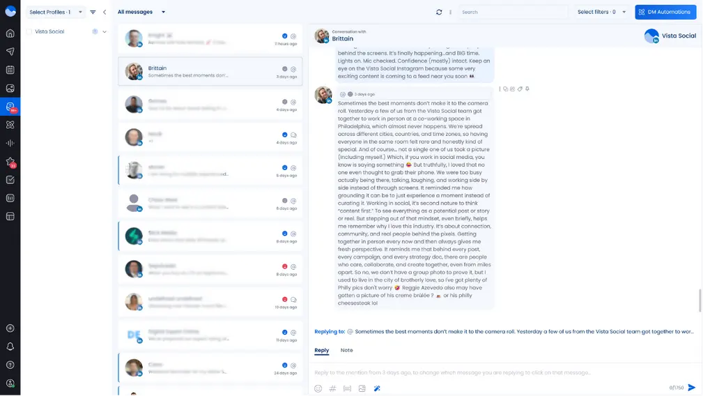 Use Vista Social‘s social inbox to monitor all your LinkedIn interactions in one place. You’ll never miss a comment, mention, or message that deserves a response.