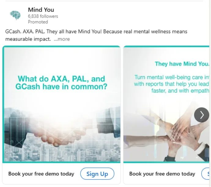 Here’s a great example of a carousel ad from mental health brand Mind You: